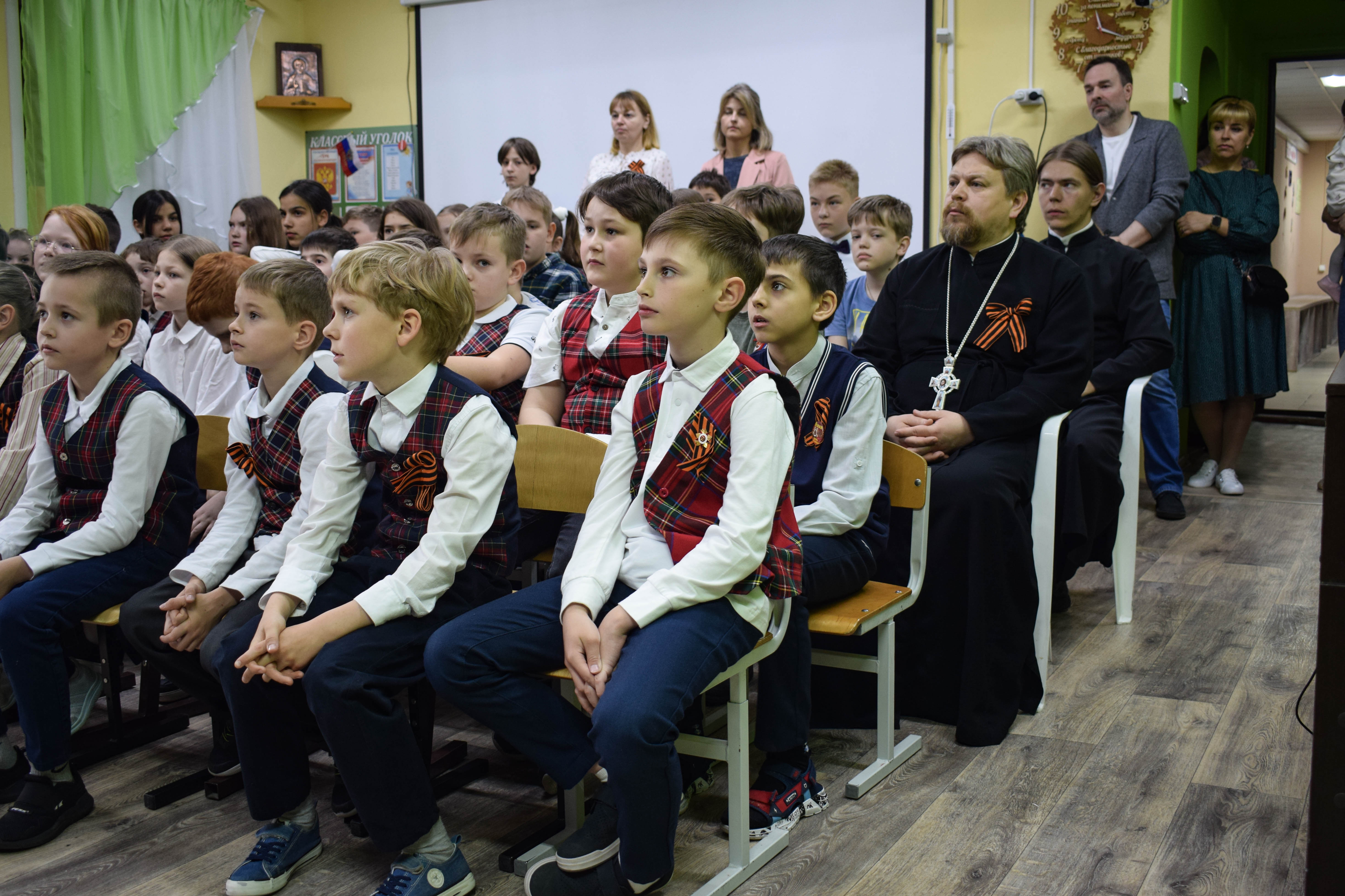 В своем выступлении учащийся рассказал о Небесных защитниках русского воинства и святых покровителях своей семьи. Святослав отметил, что помощь в создании исследовательской работы оказали его родители: папа Николай Михайлович, участник СВО (доброволец), мама Мария Николаевна. Вся семья Романовых присутствовала на мероприятии.