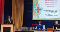 В выступлении Л.Л. Шевченко «Опыт реализации областных проектов в сфере духовно-нравственного образования и воспитания. Региональный проект 2025 г. «Святое кольцо Подмосковья. Герои» было рассказано об истории, тематике конкурса и представлены победители регионального этапа. Особенностью конкурса является коллективный характер работ участников, в подготовке которых принимают участие ученики, педагоги кураторы, родители и священнослужители.