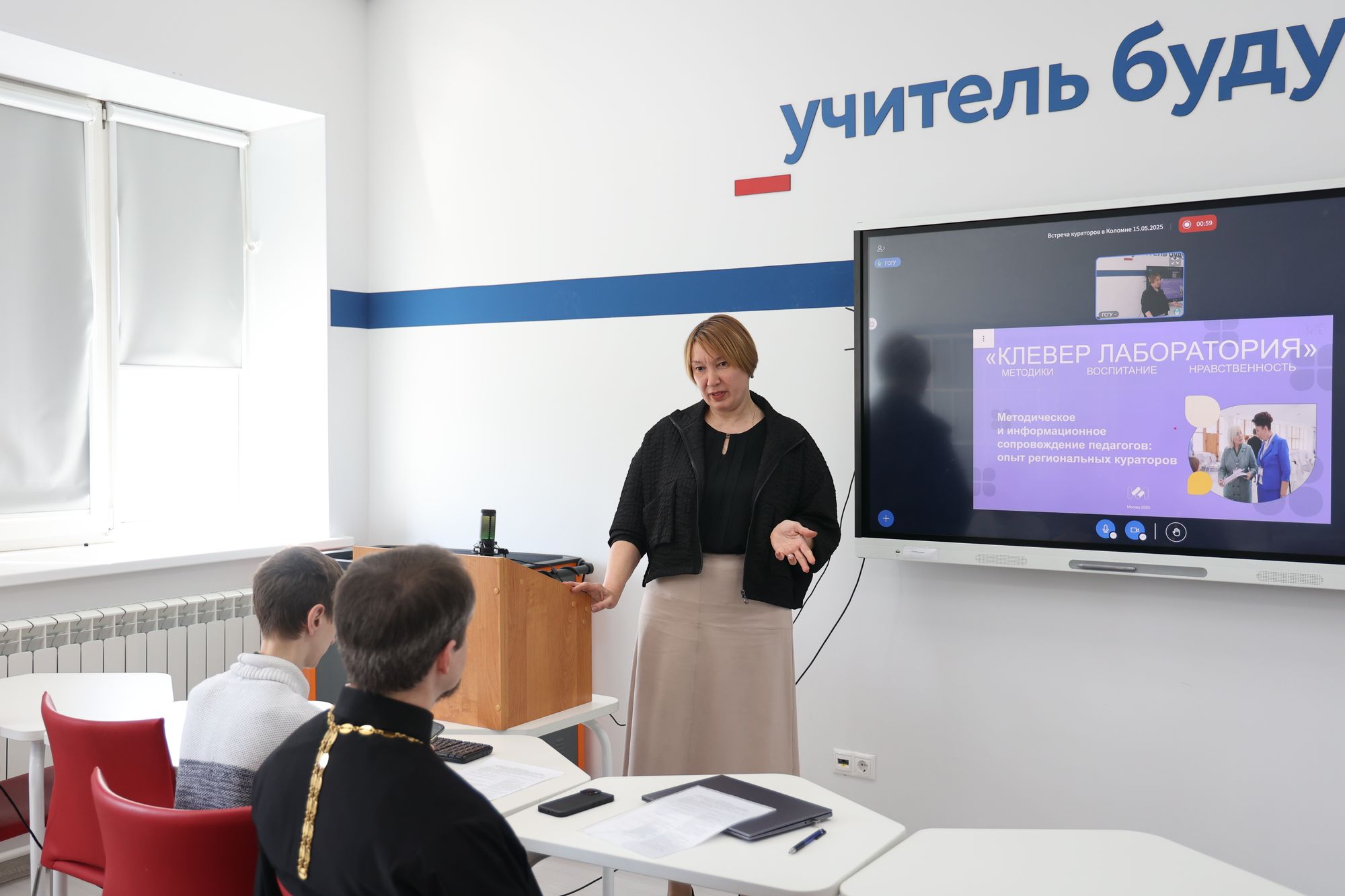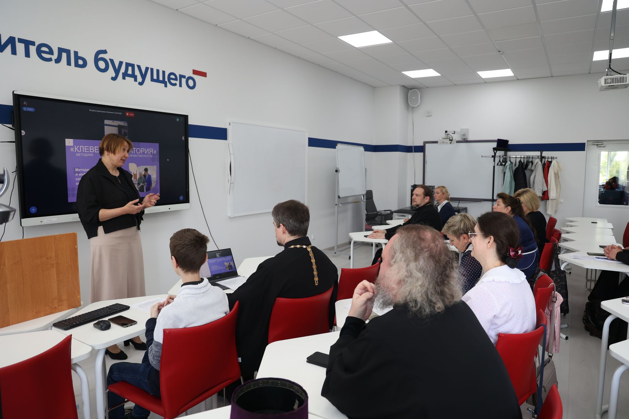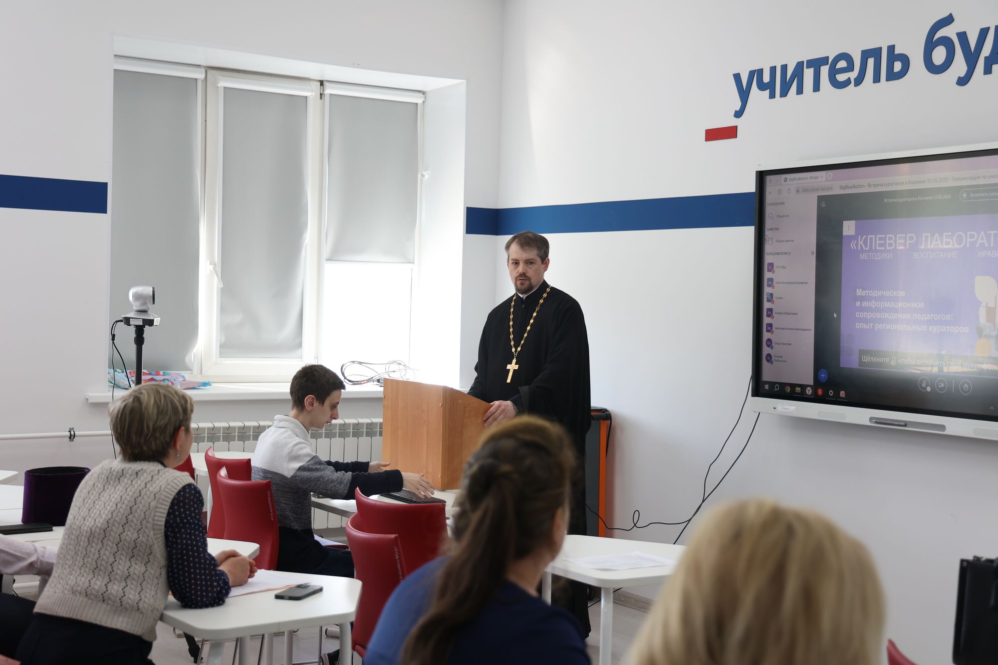 Руководитель образовательного проекта «Клевер Лаборатория» Ю.Е. Селюкова и заместитель председателя Отдела религиозного образования и катехизации Коломенской епархии протоиерей Кирилл Седов провели рабочую встречу кураторов по теме «Информационная и методическая поддержка педагогов: опыт региональных кураторов проекта «Клевер Лаборатория». На секции работали действующие кураторы платформы из Московской, Свердловской, Иркутской, Томской, Рязанской, Краснодарской, Ярославской и Луганской областей. Для участников из дальних регионов Российской Федерации проводилась онлайн-трансляция.