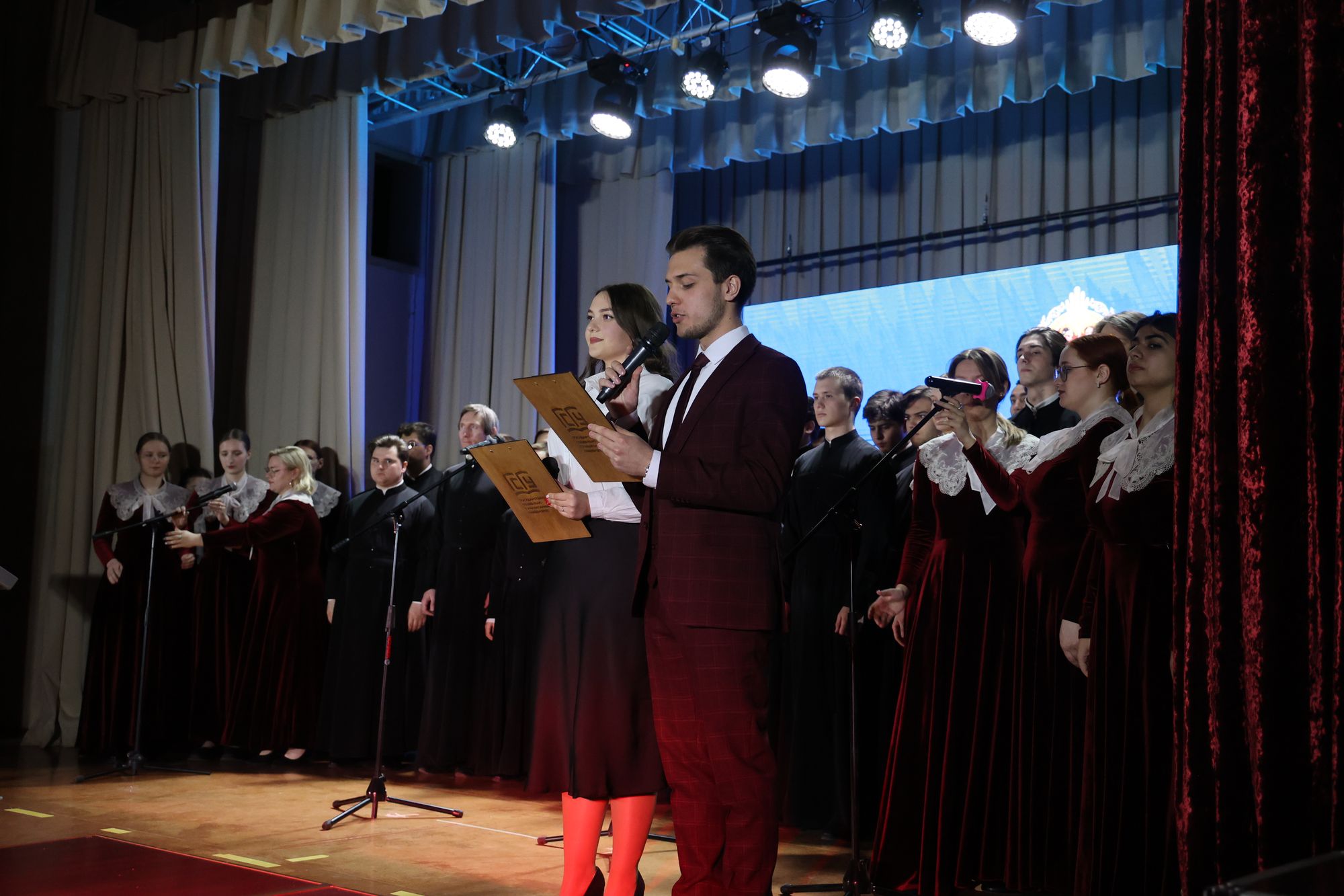 В завершение мероприятия сводный хор студентов Коломенской духовной семинарии и ГОУ ВО МО «ГСГУ» под управлением О.В. Ануфриевой исполнил гимн «Славься, Подмосковье!» (муз. А. Пахмутовой, ст. Н. Добронравова).