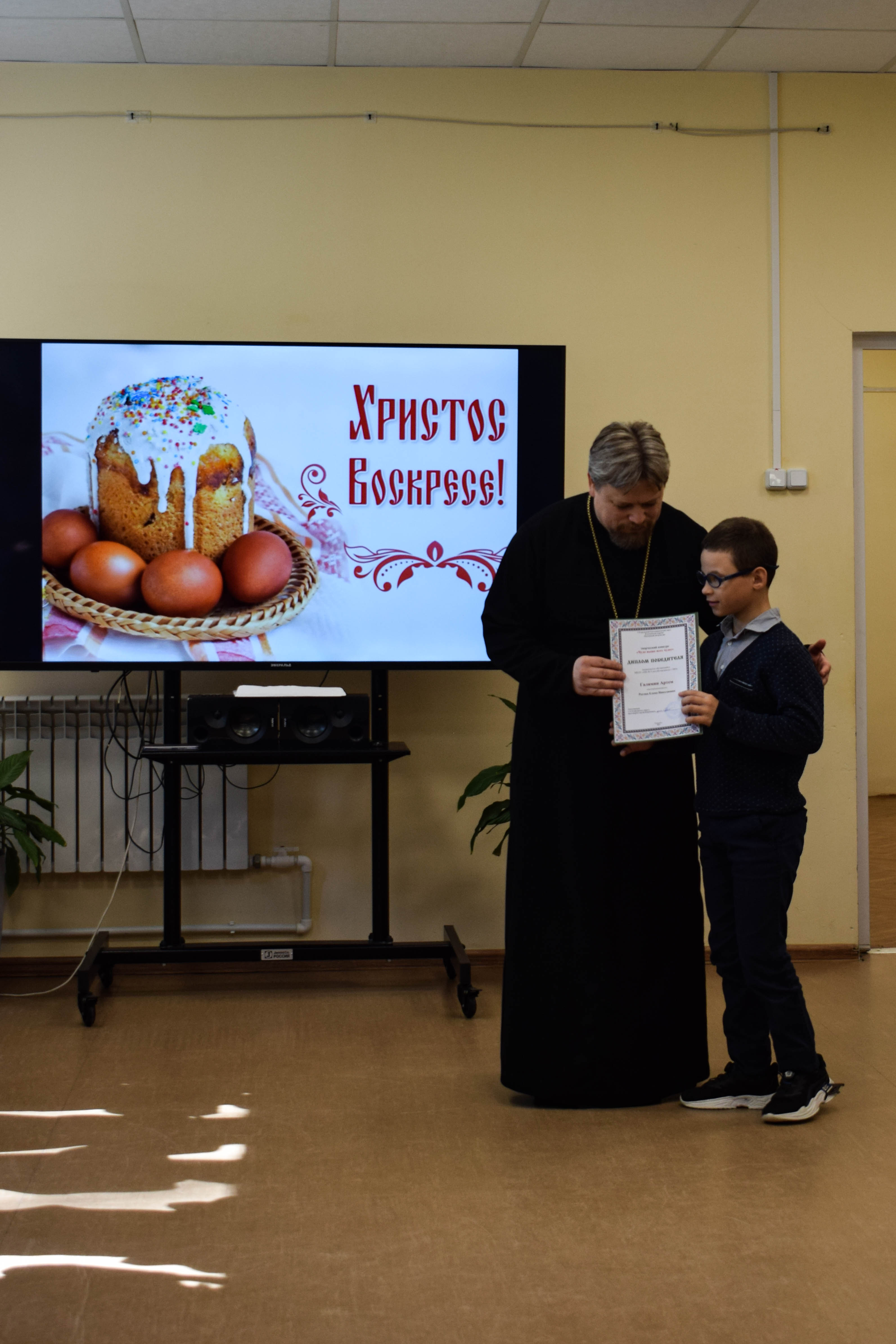 Отец Сергий поблагодарил педагогов, детей и родителей за участие в благотворительной пасхальной выставке – ярмарке «Чудо выше всех чудес», вручил дипломы и сладкие подарки.