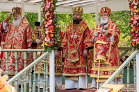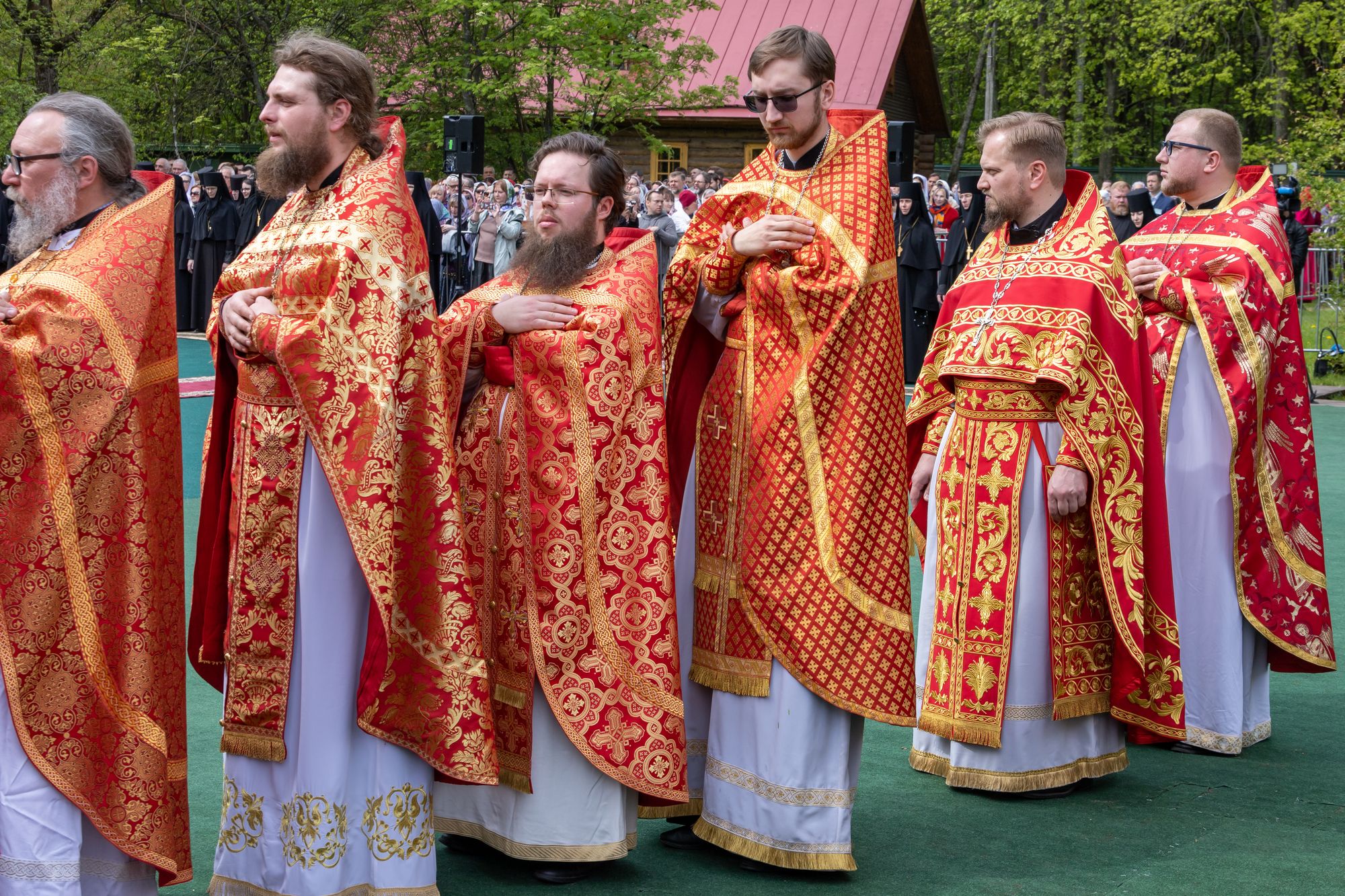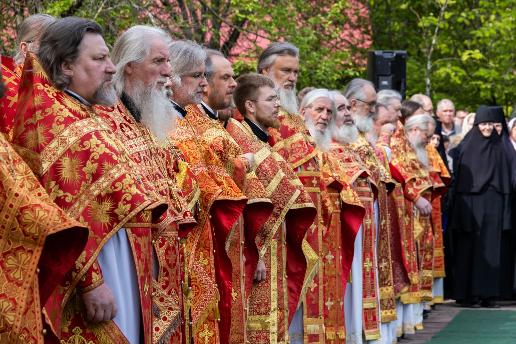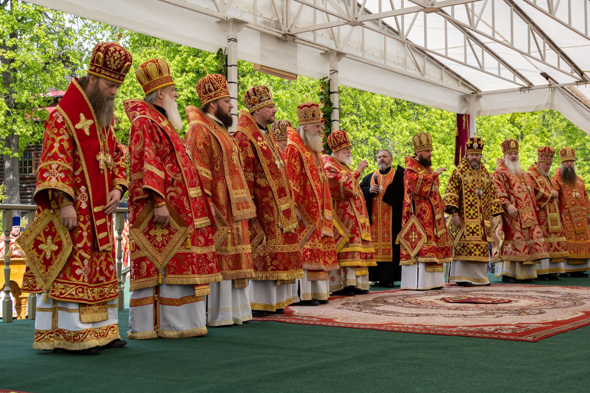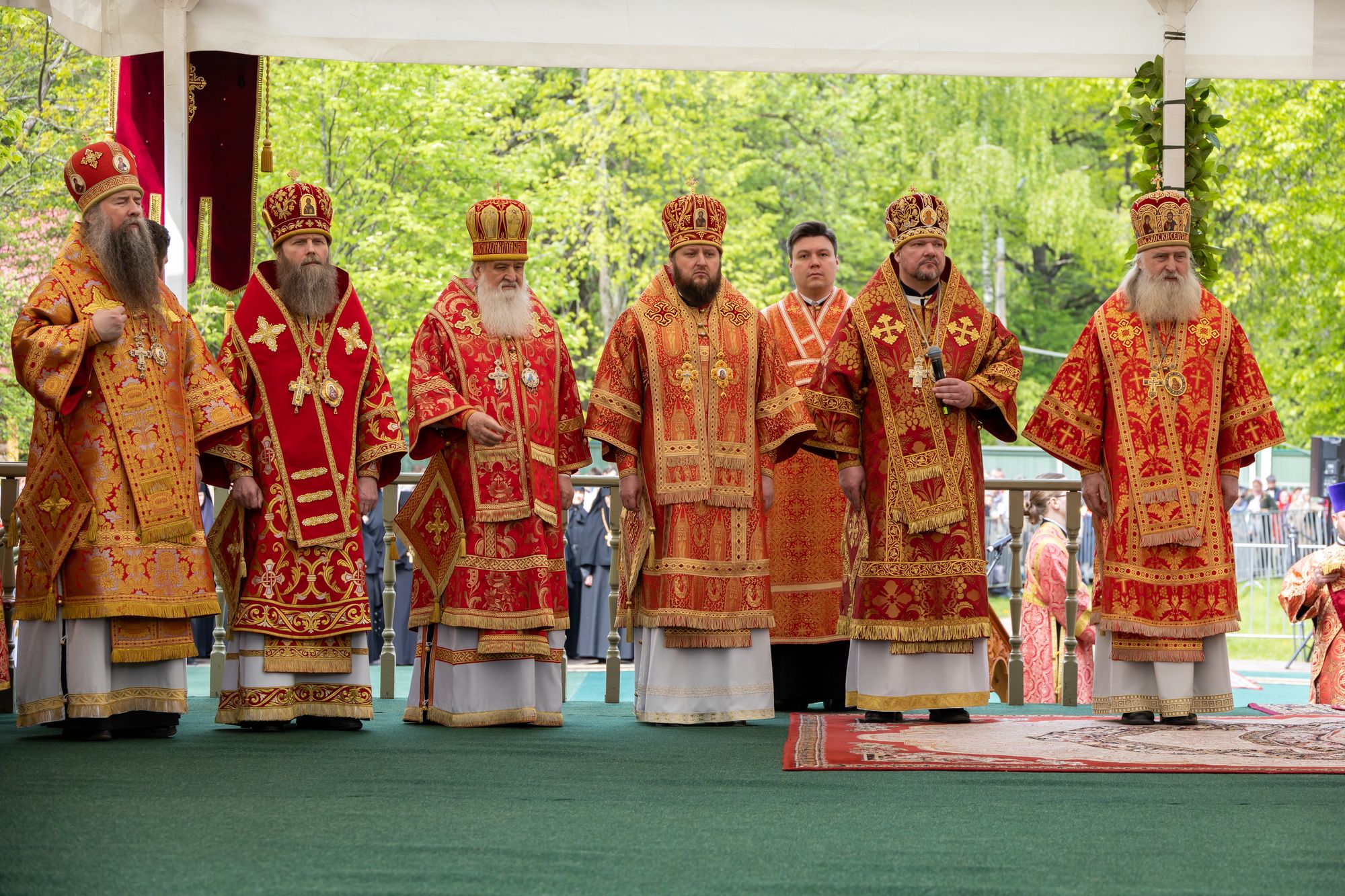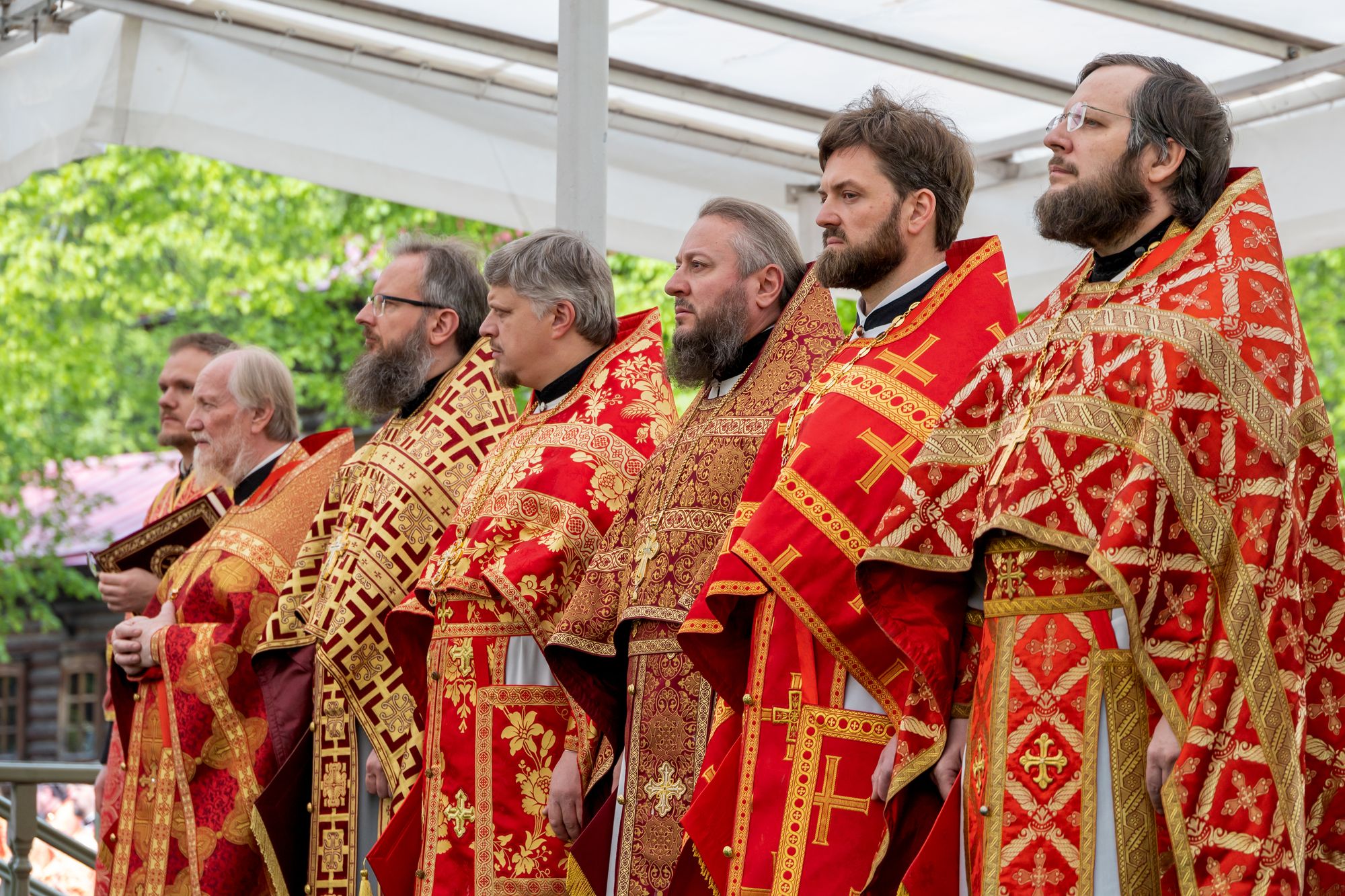 Его Высокопреосвященству сослужили: митрополит Каширский Феогност; митрополит Звенигородский Арсений; митрополит Иоанн (Рощин); архиепископ Одинцовский и Красногорский Фома; архиепископ Подольский и Люберецкий Аксий; епископ Видновский Тихон; епископ Серпуховской Роман; епископ Балашихинский и Орехово-Зуевский Николай; епископ Сергиево-Посадский и Дмитровский Кирилл; епископ Егорьевский Мефодий; секретарь Патриарха Московского и всея Руси по городу Москве протопресвитер Владимир Диваков; настоятель храма новомучеников и исповедников Российских в Бутово протоиерей Кирилл Каледа с собором духовенства города Москвы и Московской области.