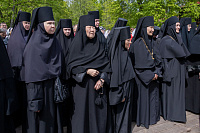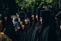 За Литургией молились игумении, настоятельницы московских женских монастырей и многочисленные паломники.
