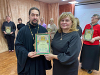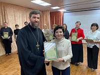 В ходе заседания состоялось награждение педагогов Пушкинского г.о., внёсших значительный вклад в духовно-нравственное воспитание подрастающего поколения. Благодарности и грамоты вручили члены Епархиальных отделов – миссионерского и отдела религиозного образования и катехизации: от Ивантеевского благочиния – настоятель Иоанно-Богословского храма д. Могильцы протоиерей Илия Зубрий, от Пушкинского благочиния – настоятель Михаило-Архангельского храма мкр. Заветы Ильича г. Пушкино иерей Кирилл Семёнов.