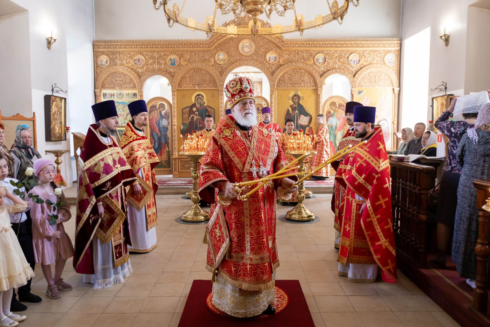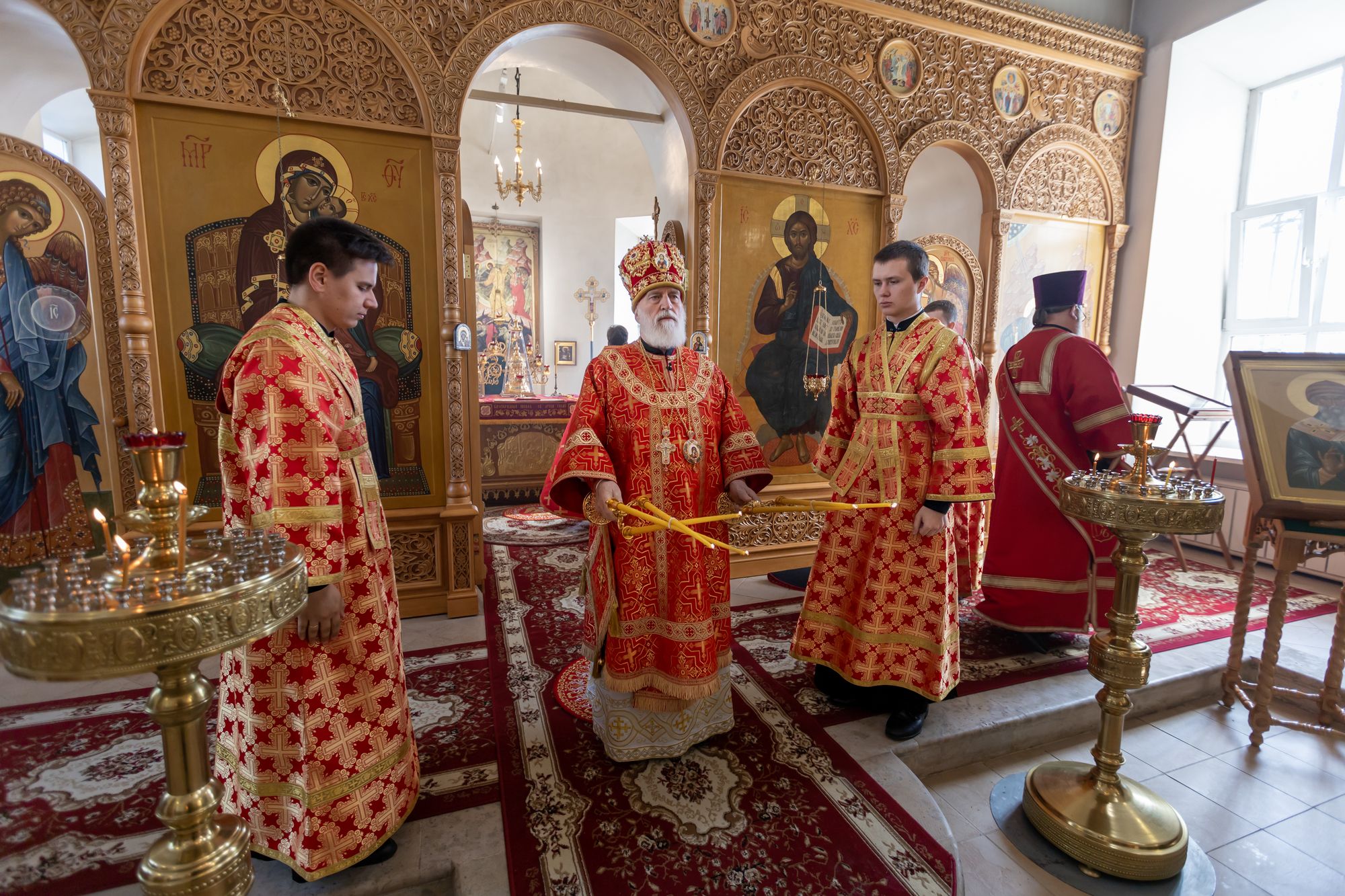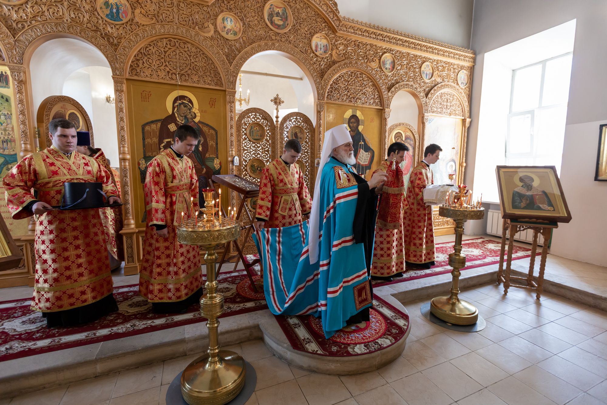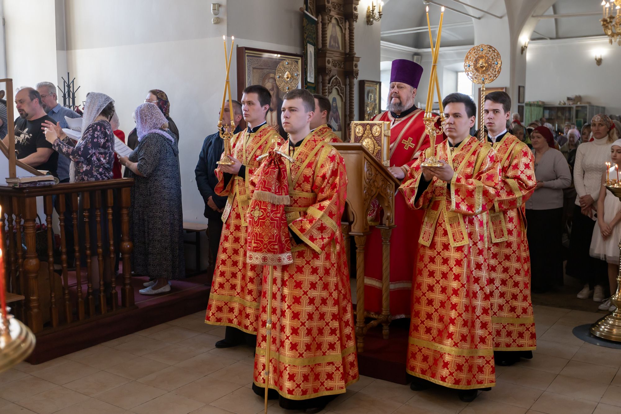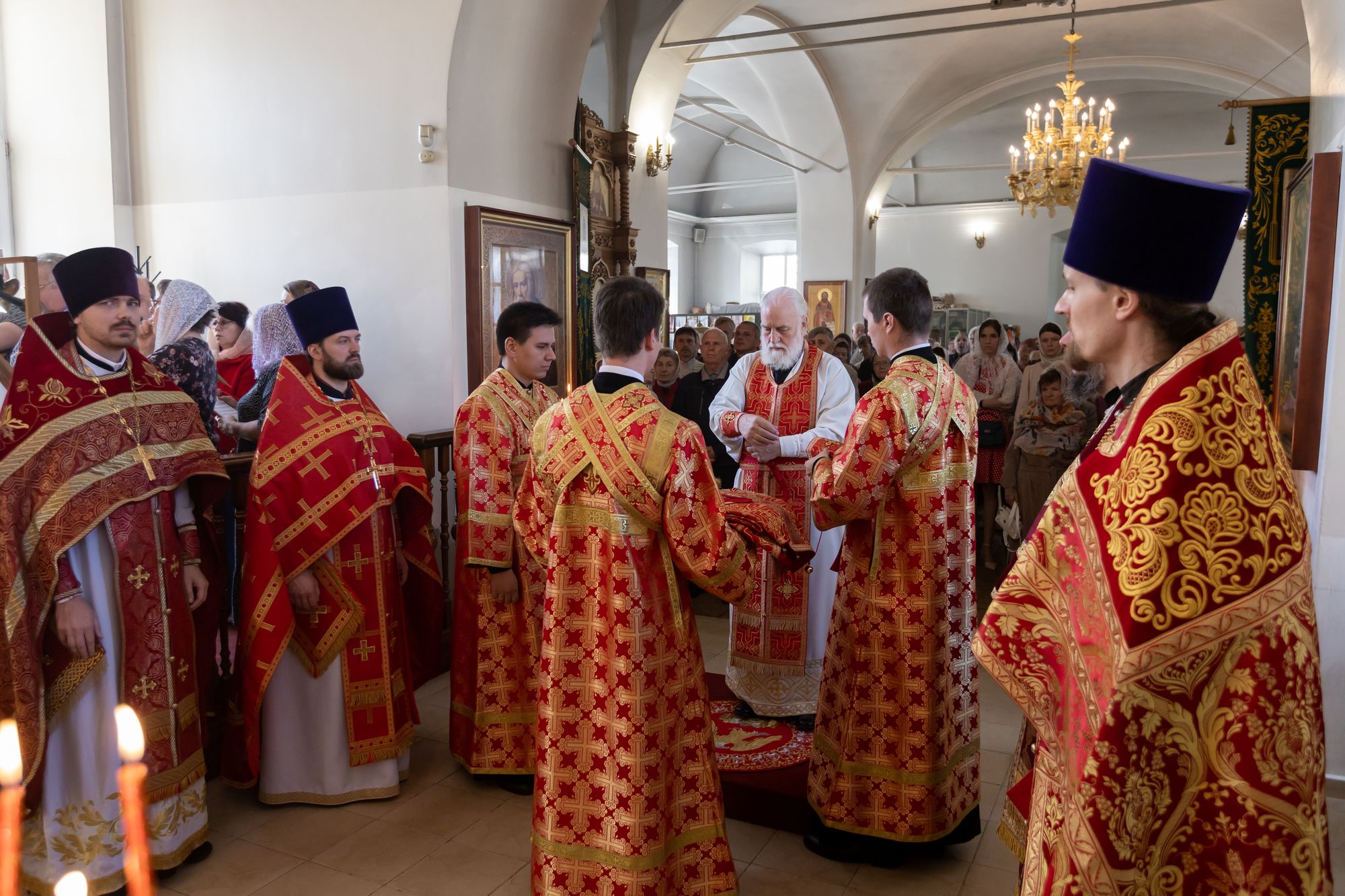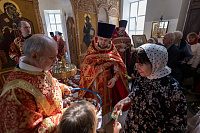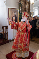 Его Высокопреосвященству сослужили: секретарь Коломенского епархиального управления иерей Андрей Згонников, благочинный 1-го Коломенского округа протоиерей Алексий Виноградов, настоятель храма иерей Димитрий Варламов, настоятель Крестовоздвиженского храма города Коломны иерей Иоанн Бакушкин и клирики храма.