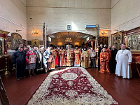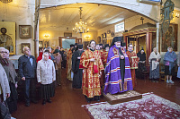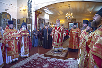 Его Преосвященству сослужили настоятель обители игумен Серафим (Голованов), благочинный монастырей Балашихинской епархии игумен Евмений (Лагутин), настоятель Покровско-Васильевского монастыря игумен Андрей (Тонков), благочинный Орехово-Зуевского церковного округа иеромонах Андрей (Коробков) и братия обители в священном сане.
