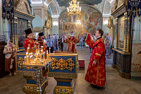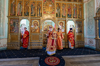 Богослужебные песнопения исполнил соборный хор под управлением Натальи Камышниковой.