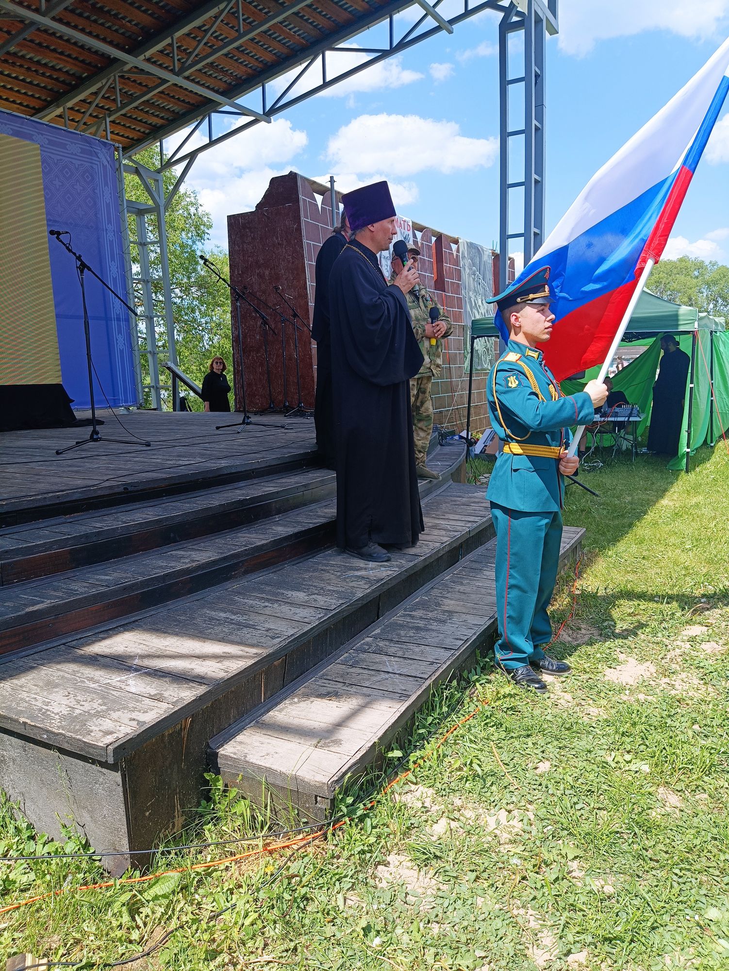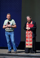 С большой сцены участников фестиваля приветствовали глава администрации м. о. Зарайск В. А. Петрущенко, начальник управления образования муниципального округа Зарайск Е. Н. Прокофьева и настоятель Успенского храма протоиерей Михаил Сокрутов - ответственный по делам молодежи Коломенской епархии, который рассказал о работе площадок фестиваля.