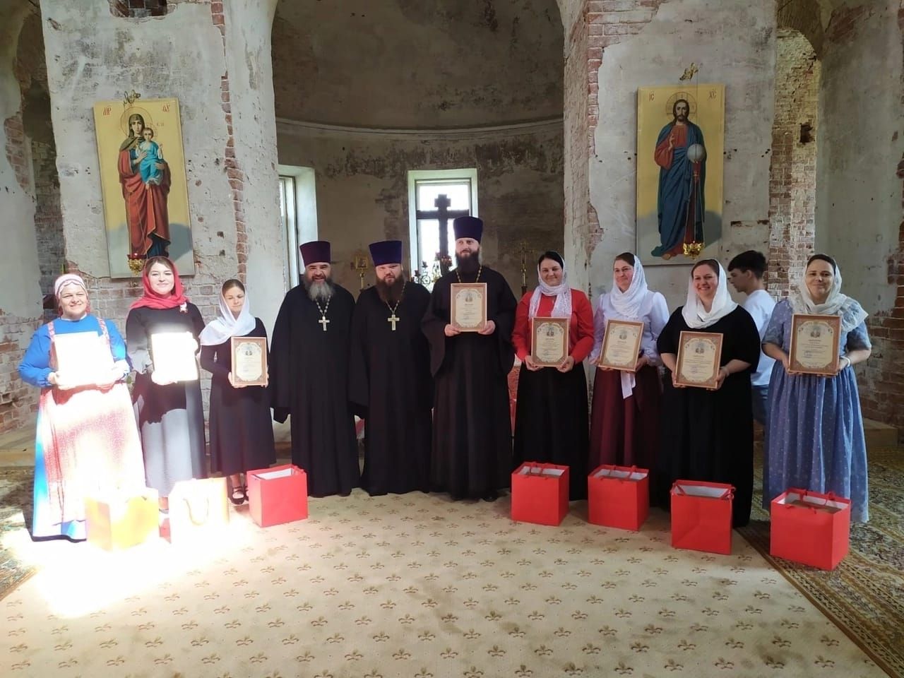Отец Александр и отец Антоний вручили руководителям коллективов дипломы и памятные подарки, предоставленные производственно-интеграционными мастерскими «Империя ремёсел» села Ильинский погост.