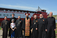 27 мая настоятель Вознесенского храма г. Коломна священник Иоанн Парфенов в сослужении клирика Успенского кафедрального собора протодиакона Сергий Трутнева по приглашению руководства АО "Порт Коломна" совершили чин освящения теплохода медицинского назначения "Святитель Лука". Богослужебные песнопения исполнил ансамбль духовенства Коломенской епархии под управлением священника Николая Глухова.