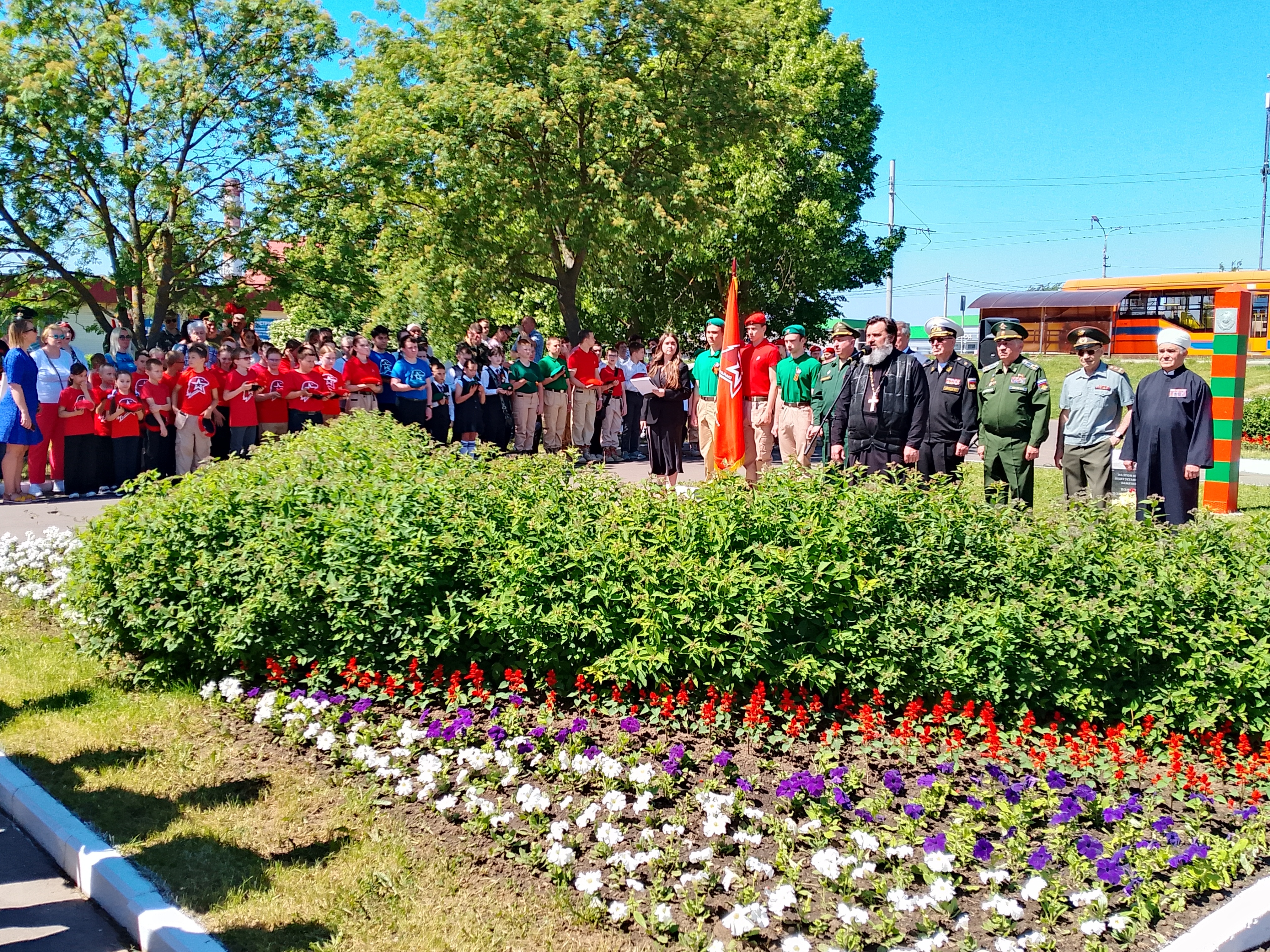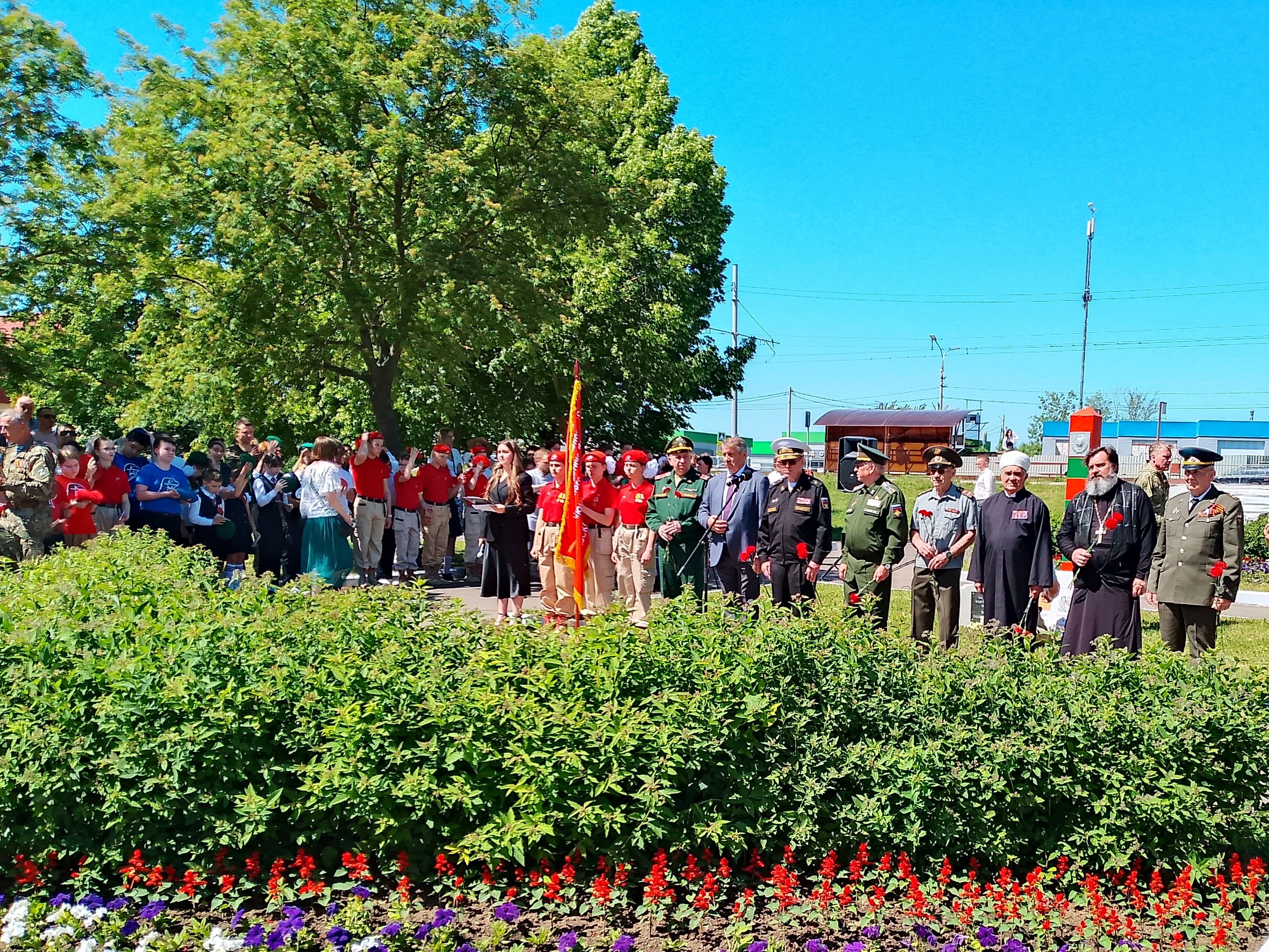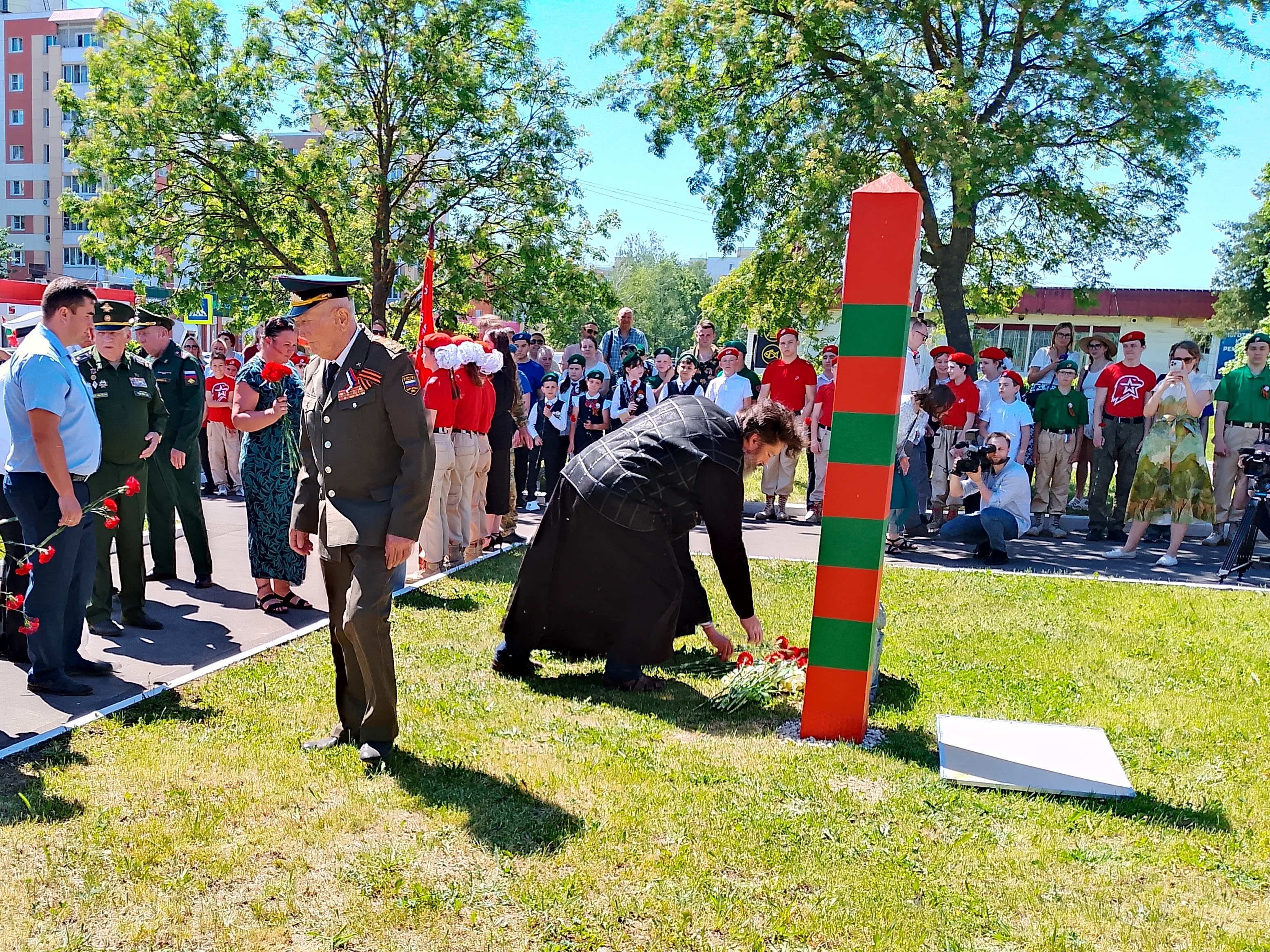 В завершении торжественного митинга собравшиеся возложили цветы к мемориалу погранвойскам.