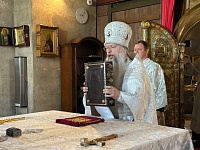 Владыке сослужила братия обители, а также ответственный за молодежное служение в Западном викариатстве г. Москвы иерей Илья Письменюк.