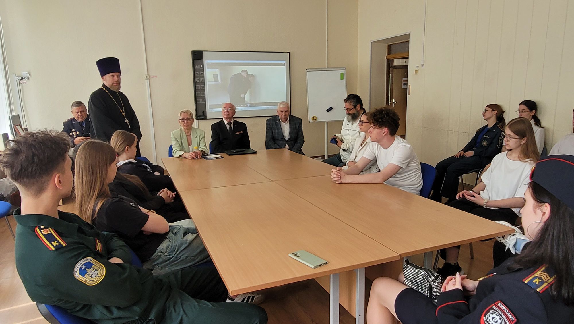 К завершившим обучение ребятам обратились председатель совета ветеранов Щёлковского отделения полиции Нина Медведева, депутат совета депутатов муниципалитета Николай Павлов, председатель окружного совета ветеранов Борис Дудик, клирик Троицкого собора города Щёлково священник Димитрий Медведев.