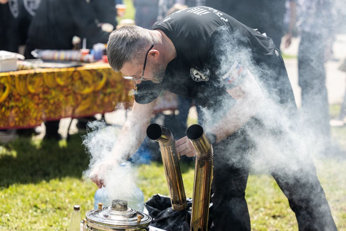 «Русская Община» развернула интерактивные площадки с угощениями за самоваром, народными играми, казачьим варом и мастер-классом по владению шашкой. Отдельной экспозицией стали трофеи и оружие, связанные со специальной военной операцией.