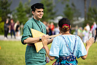 Гости соревновались в игре в городки, угощались на полевой кухне и пробовали гигантский торт весом 150 кг от кафе «Династия».