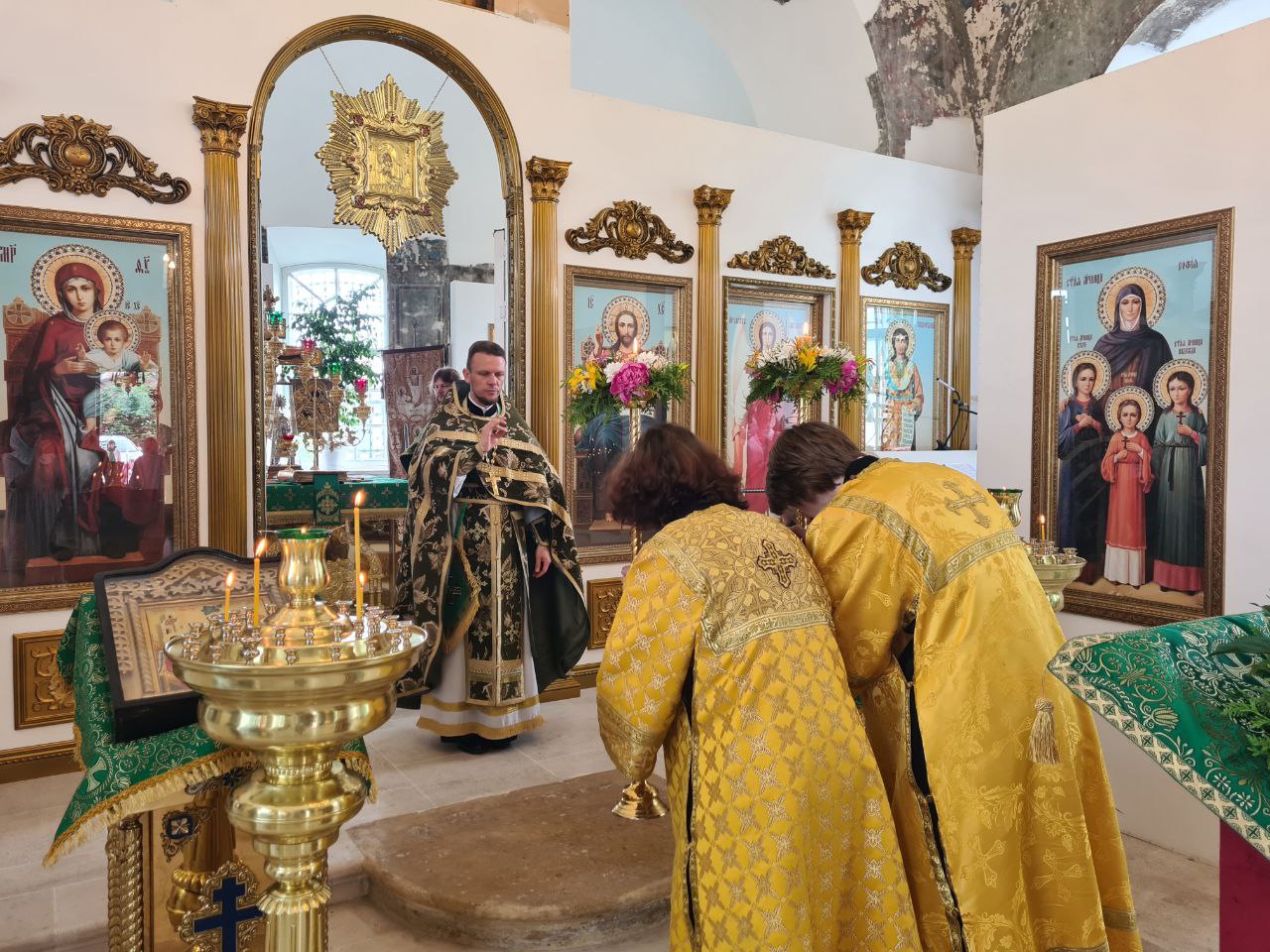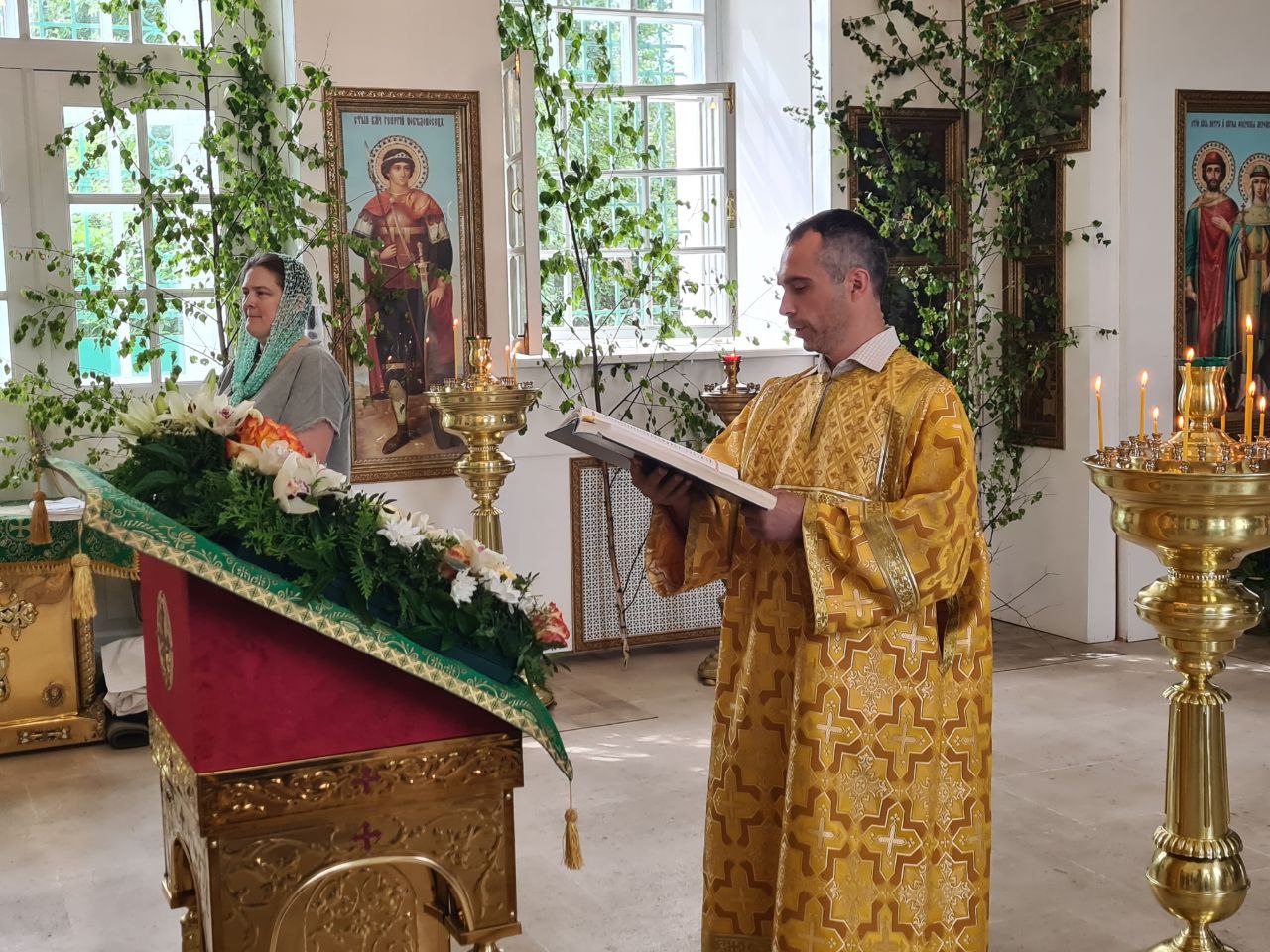 9 июня в Троицком храме с. Бисерово Раменского муниципального округа на второй день престольного праздника, в День Святого Духа, состоялось соборное служение Божественной литургии, которое возглавил благочинный 1-го Бронницкого округа иерей Сергий Себелев в сослужении настоятеля храма иеромонаха Петра (Чернышова) и настоятеля Никитского храма с. Софьино иерея Александра Ионова.