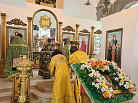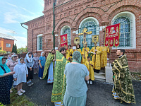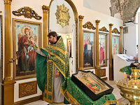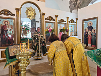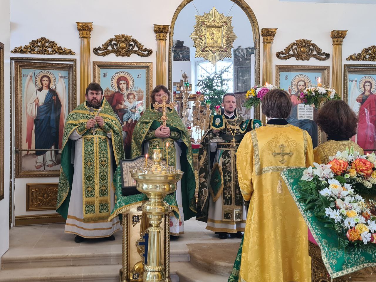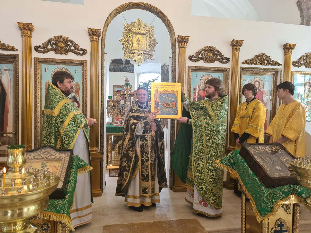 В конце Литургии состоялся крестный ход, а затем благочинный обратился с поздравительным словом к сослужащим и прихожанам храма. Настоятель храма иеромонах Пётр поблагодарил отца Сергия за радость совместного служения и преподнёс ему от лица прихода памятный подарок – икону, написанную на сюжет одного из 11-ти воскресных евангельских чтений.