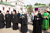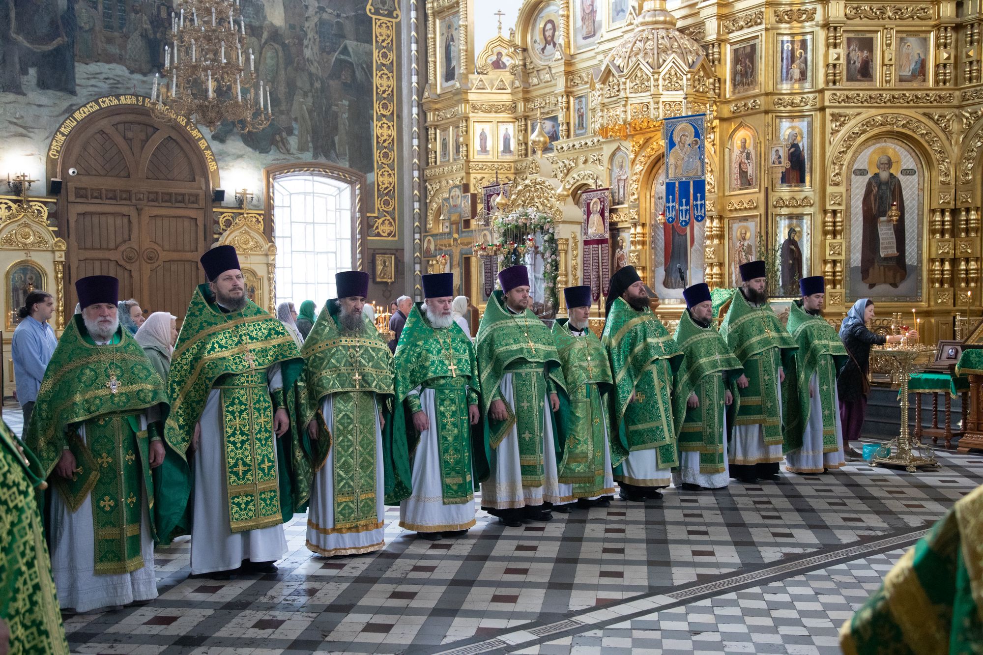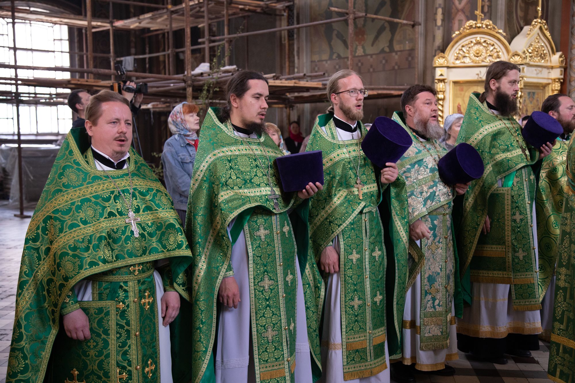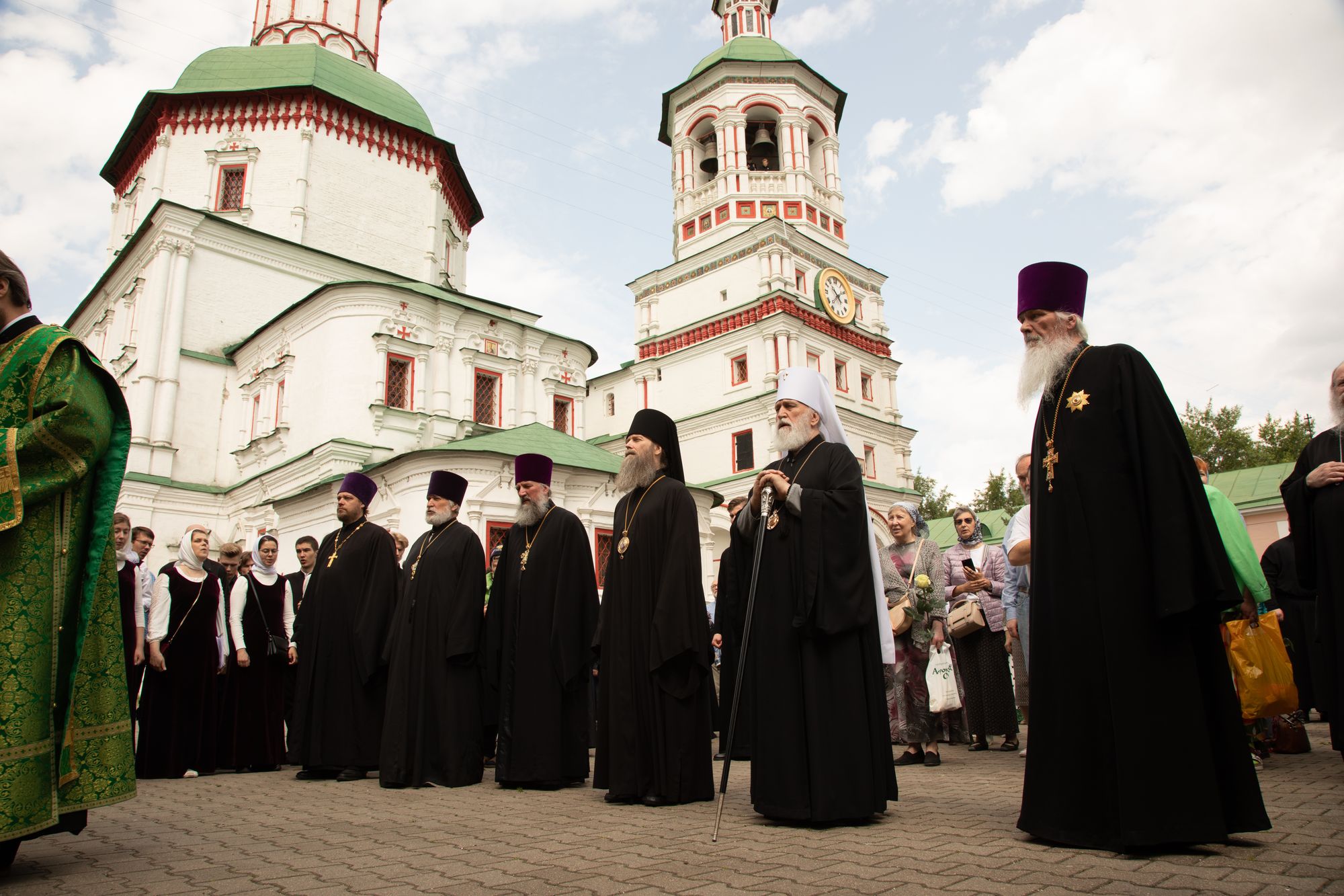 Архипастырям сослужили: протоиерей Владимир Чувикин, настоятель храмов Патриаршего подворья Николо- Перервинского монастыря; архимандрит Алексий (Вылажанин), благочинный Петро-Павловского благочиннического округа; протоиерей Владислав Гусар, проректор по воспитательной работе Перервинской духовной семинарии; протоиерей Владимир Макеев, настоятель храма равноапостольных Кирилла и Мефодия на Дубровке города Москвы; иеромонах Афанасий (Иванов), настоятель храма Успения Пресвятой Богородицы в Вешняках города Москвы; иерей Александр Акулин, настоятель храма праведного Иоанна Кронштадтского в Горловине города Москвы; клирики обители и приглашённое духовенство.