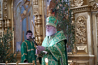 12 июня 2025 года, в четверг 1-й седмицы по Пятидесятнице, память преподобного Исаакия, игумена обители Далматской, митрополит Крутицкий и Коломенский Павел в сослужении управляющего викариатством новых территорий города Москвы епископа Павлово-Посадского Силуана по благословению Святейшего Патриарха Московского и всея Руси Кирилла возглавил Божественную литургию в Иверском соборе Патриаршего подворья Николо-Перервинского мужского монастыря города Москвы.