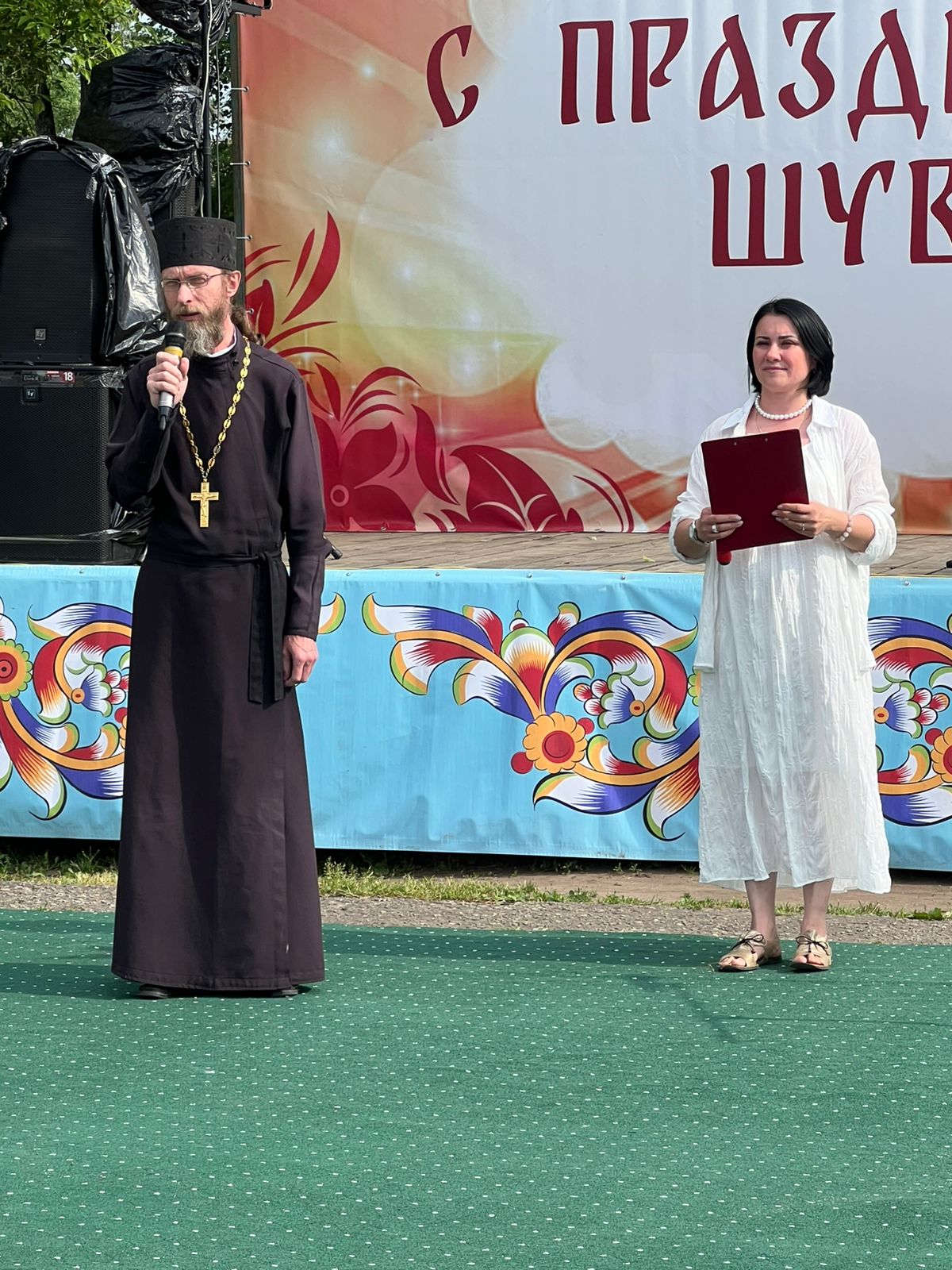 8 июня 2025 года в День Святой Троицы, настоятель Троицкого храма п. Шувое иерей Роман Копин принял также участие в мероприятии по случаю дня посёлка Шувое.