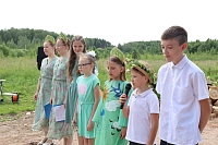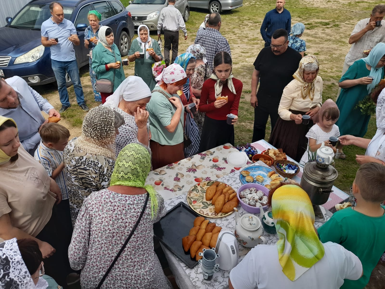 8 июня 2025 года после богослужения в Введенском храме д. Рыжево воспитанники детской воскресной школы "Горлица" провели уютный домашний праздник для прихожан. Ребята рассказали о предваряющих событиях, значении и особенностях празднования Троицы, об апостольской проповеди, об иконе Андрея Рублева. Прочитали стихи и показали творческие номера. Играли в русские народные игры "Горелки", "Жмурки" и "Вышибалы". Пили чай с пирогами и сладостями.