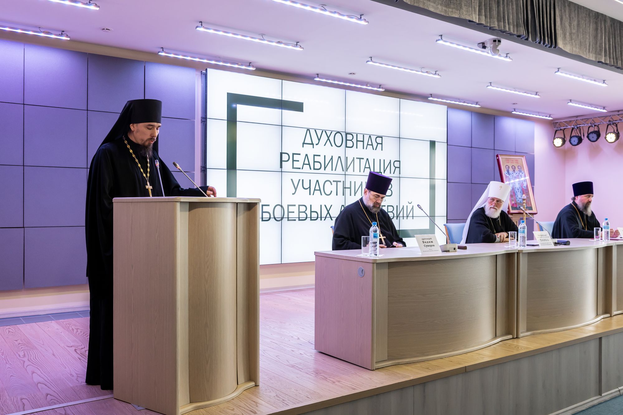 Перед началом конференции Патриарший наместник Московской митрополии митрополит Крутицкий и Коломенский Павел возглавил молебен в Трёхсвятительском храме семинарии. Ему сослужили: ректор Коломенской духовной семинарии протоиерей Вадим Суворов, председатель Межъепархиального отдела протоиерей Марк Ермолаев (Балашихинская епархия); председатели епархиальных отделов по взаимодействию с Вооружёнными Силами и правоохранительными органами епархий Московской митрополии: протоиерей Николай Курдов (Одинцовская епархия); игумен Феофан (Замесов) (Сергиево-Посадская епархия); иерей Димитрий Довбыш (Подольская епархия);