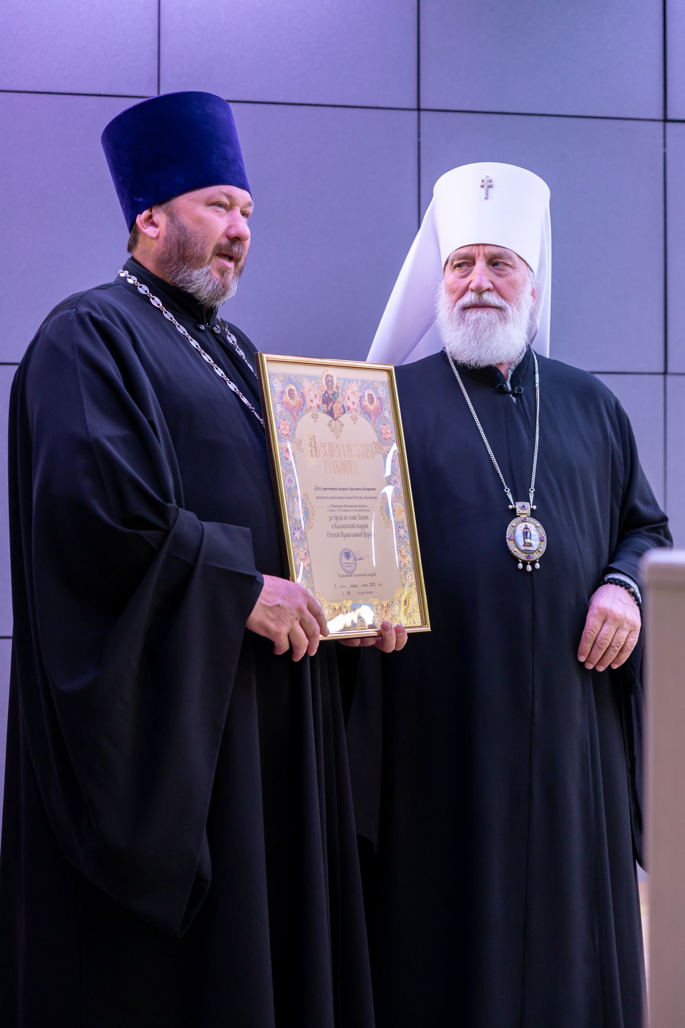 В связи с 50-летием со дня рождения и во внимание к трудам во славу Божию митрополит Павел удостоил протоиерея Андрея Козорезова, заместителя председателя Отдела по взаимодействию с Вооружёнными силами, правоохранительными органами и казачеством Коломенской епархии Архиерейской грамоты.