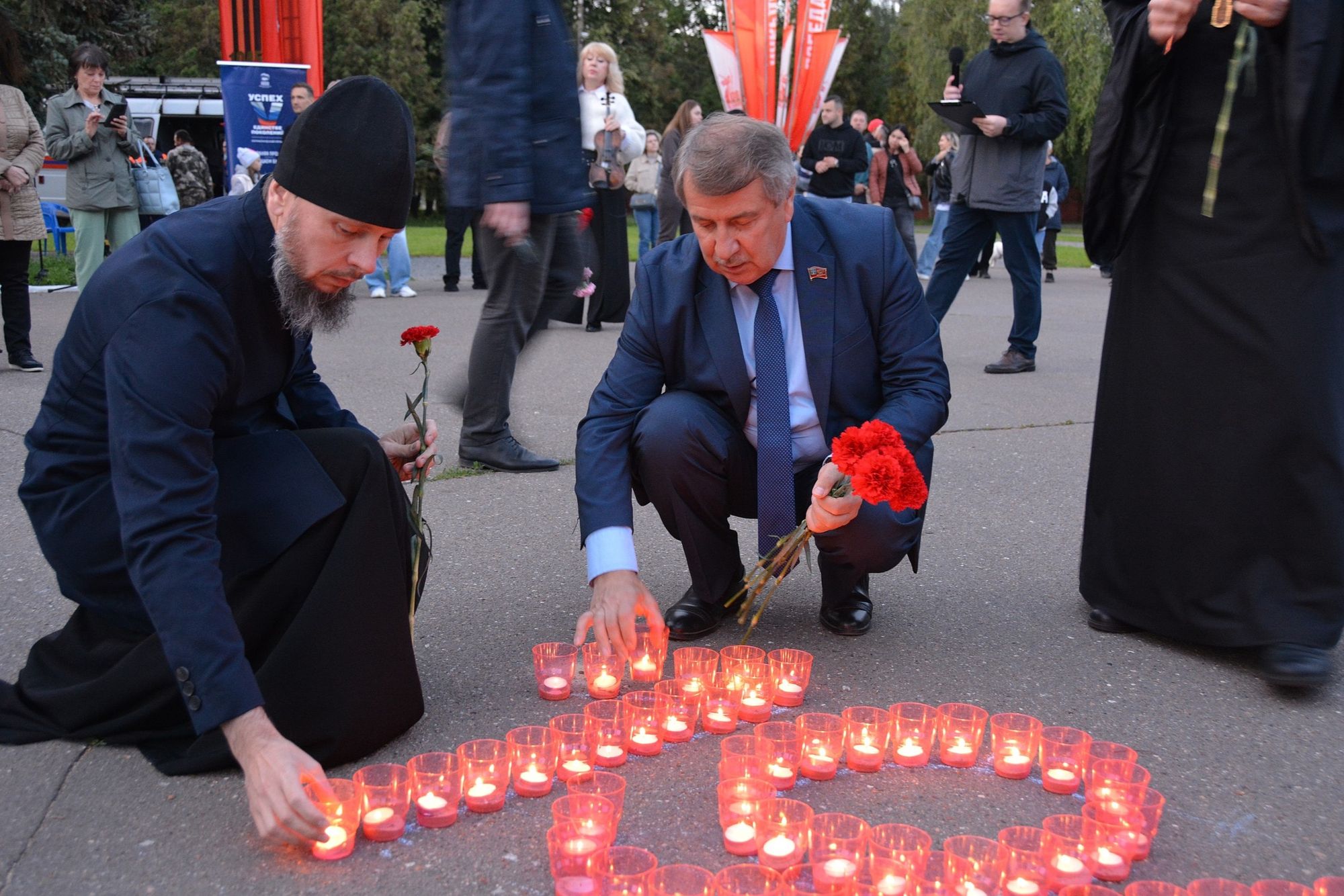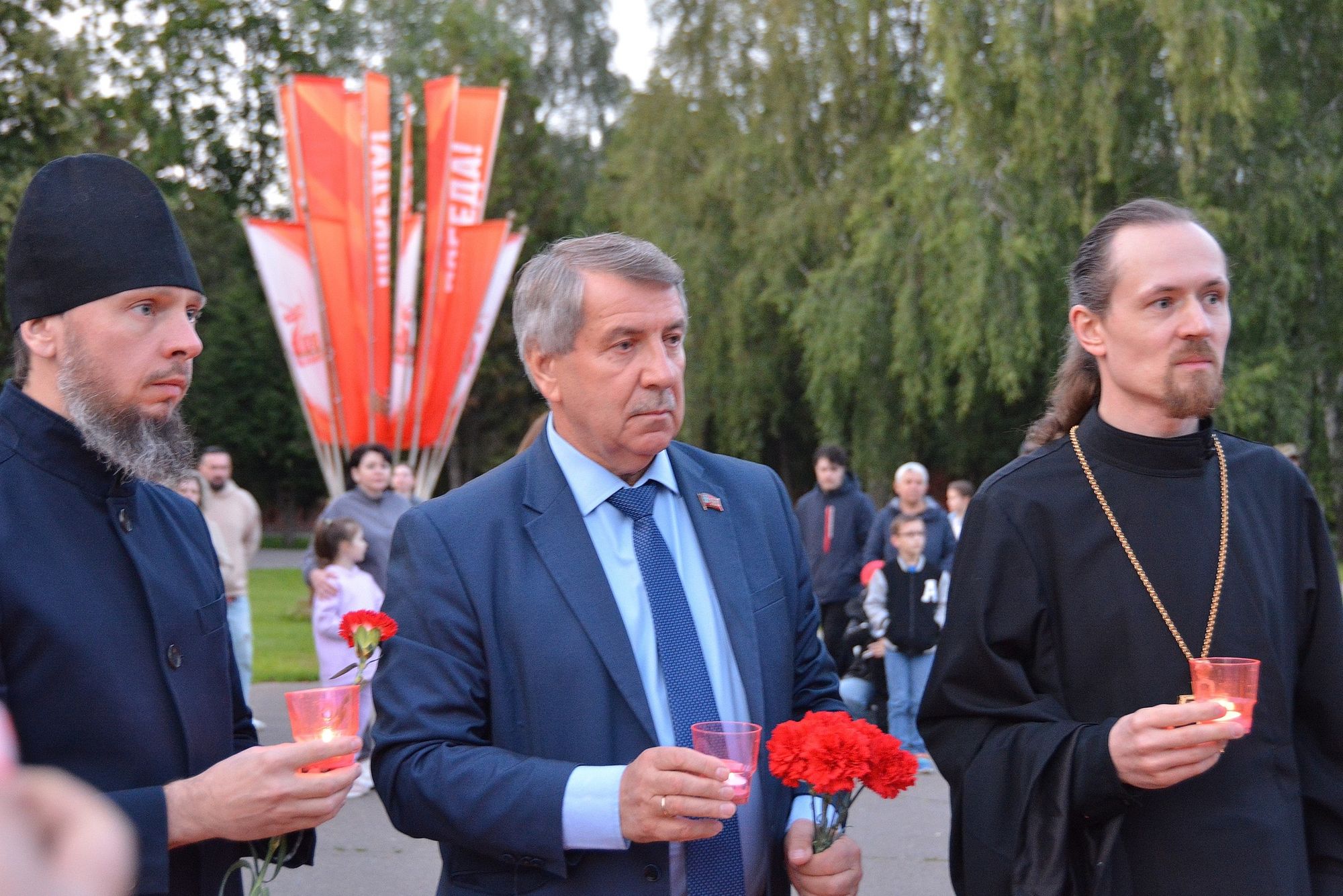 Вечером 21 июня 2025 года, накануне Дня памяти и скорби, в Мемориальном парке г. Коломна состоялась акция «Свеча памяти». Представители общественных и ветеранских организаций, волонтёры, поисковики, школьники, студенты и жители города зажгли тысячу свечей в память о тех, ценой своей жизни защищал наше Отечество. В мероприятии приняли участие благочинный 1-го Коломенского благочиннического округа протоиерей Алексий Виноградов и председатель Отдела по миссионерской работе и делам молодежи Коломенской епархии иерей Иоанн Бакушкин, обратившийся с приветственным словом к участникам акции.