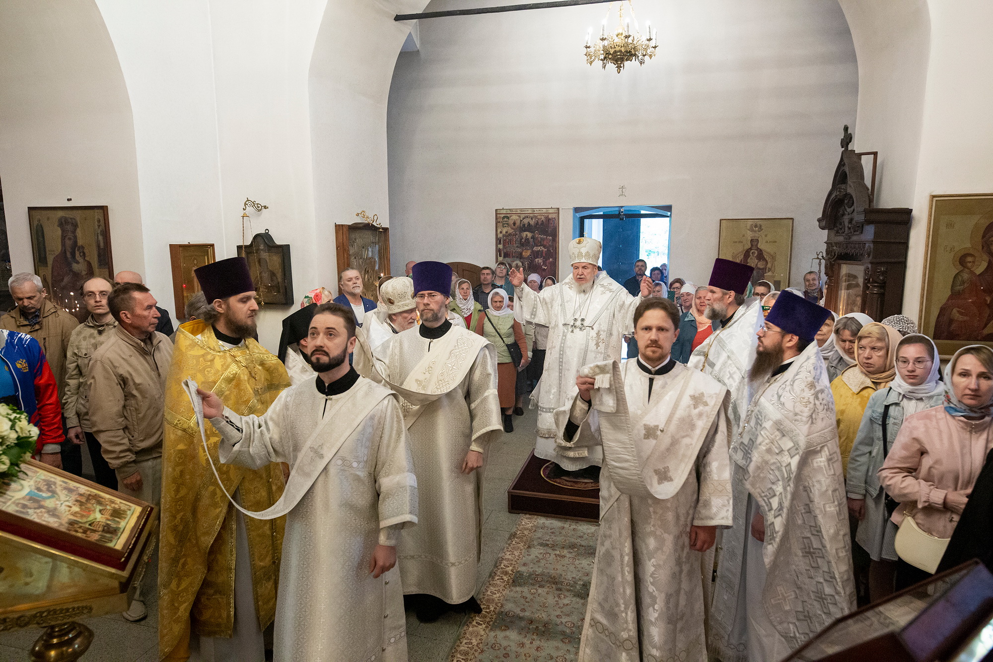 Его Преосвященству сослужили благочинный Щёлковского церковного округа протоиерей Андрей Ковальчук, благочинный Орехово-Зуевского церковного округа иеромонах Андрей (Коробков), настоятель храма протоиерей Сергий Дубинин и духовенство Балашихинской епархии.