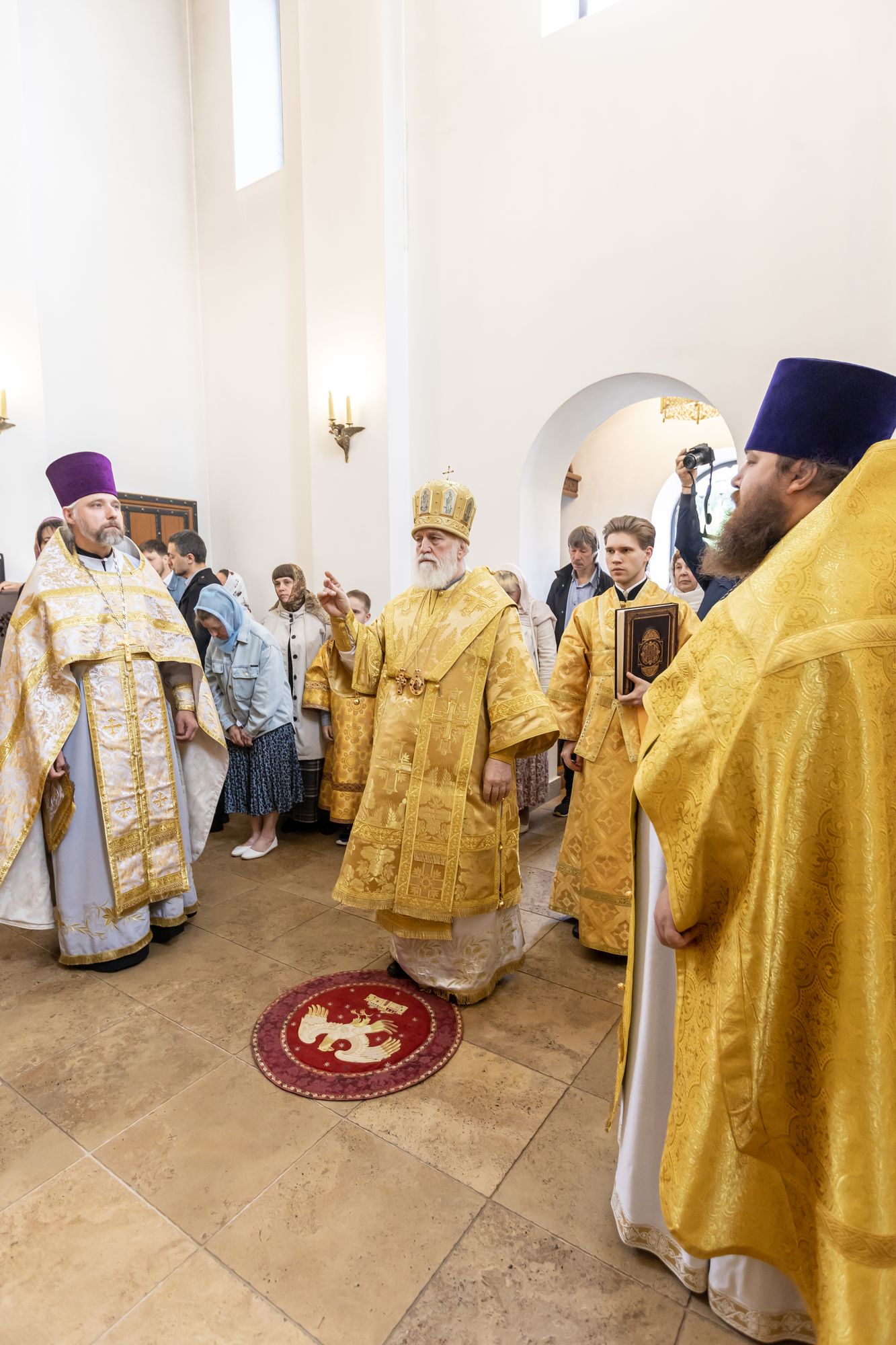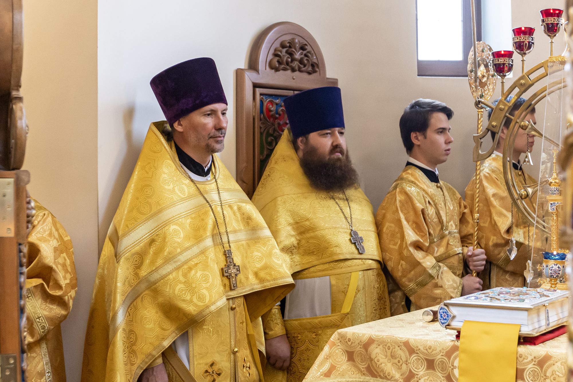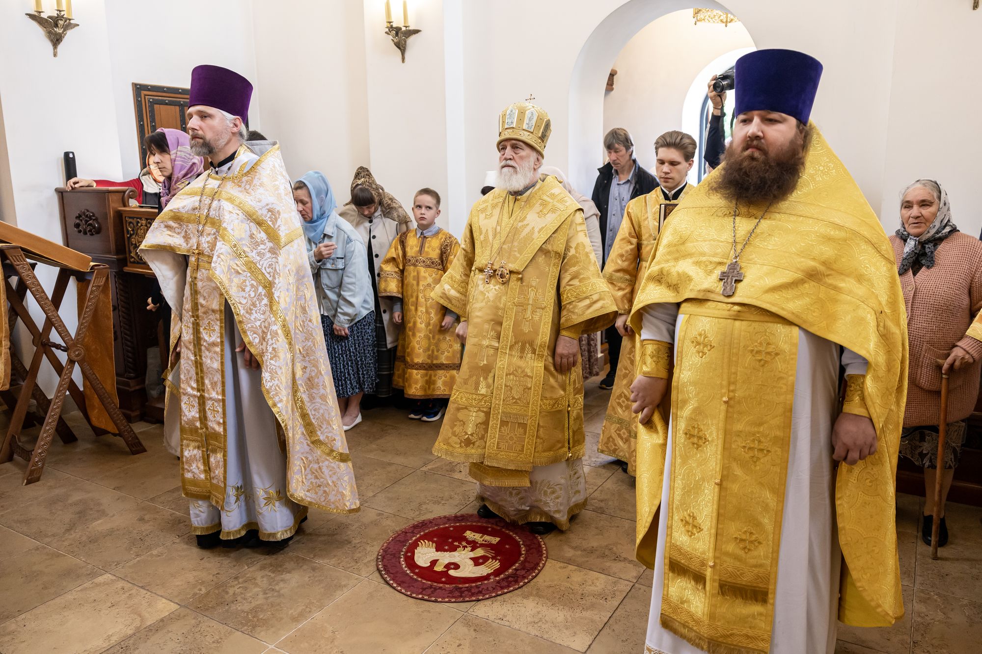 Его Высокопреосвященству сослужили: секретарь Коломенского епархиального управления иерей Андрей Згонников; благочинный Зарайского округа, настоятель храма протоиерей Пётр Спиридонов; клирик храма иерей Георгий Пужалов и настоятель Богородицерождественского храма д. Радушино Зарайского округа иерей Андрей Спиридонов.