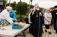 Для прихожан было организовано праздничное угощение на храмовой территории.