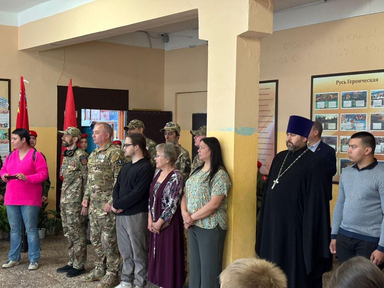 На мероприятии присутствовали члены семьи погибшего участника СВО, директор школы Наталья Николаевна Корунская, настоятель Никитского храма с. Софьино иерей Александр Ионов, социальные координаторы фонда "Защитники Отечества", руководитель и ветераны Раменского отделения Ассоциации ветеранов СВО, педагогический состав, учащиеся школы.
