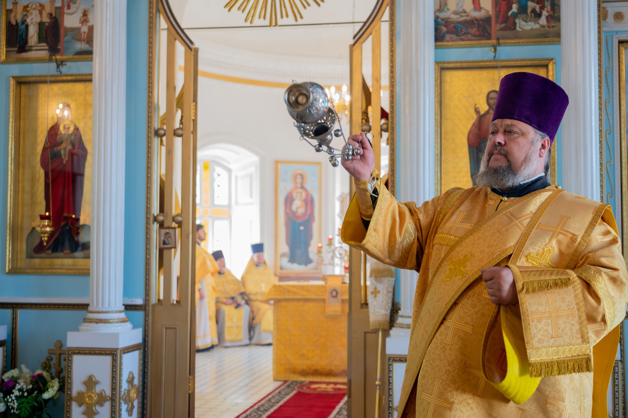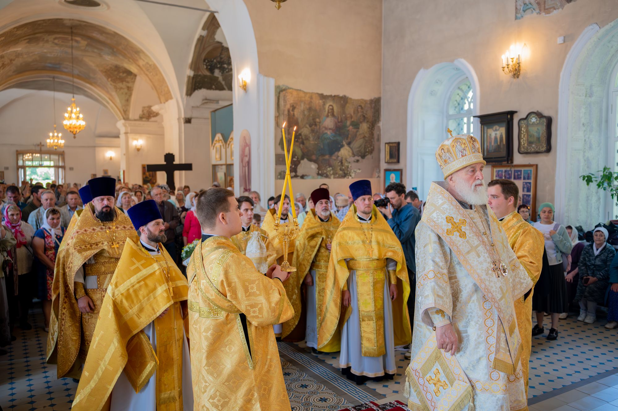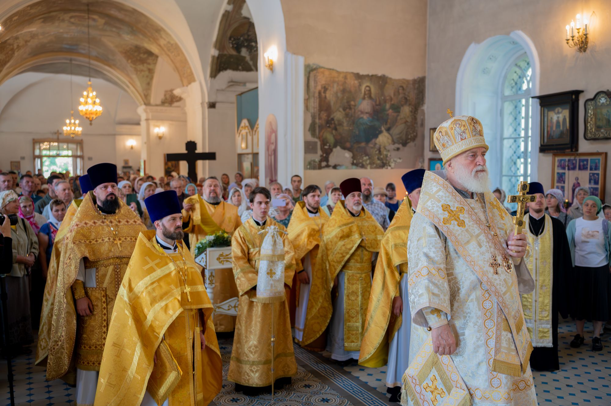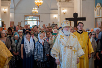 28 июня 2025 года, в субботу 3-й седмицы по Пятидесятнице, митрополит Крутицкий и Коломенский Павел возглавил Божественную литургию в Спасо-Преображенском храме посёлка Белоомут.