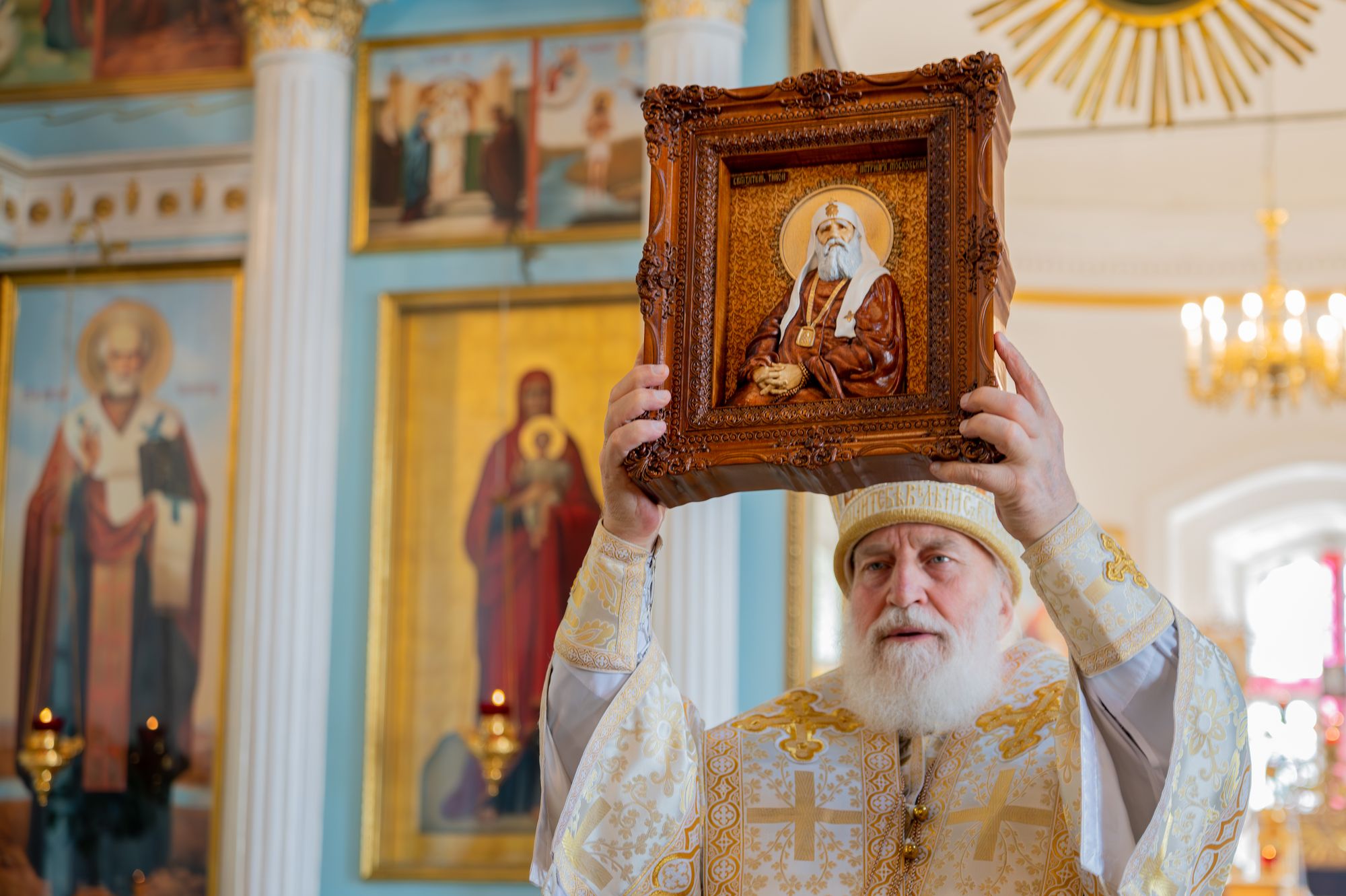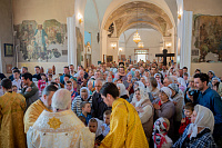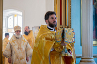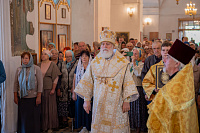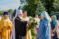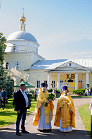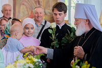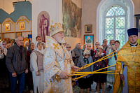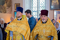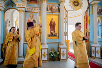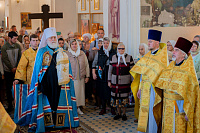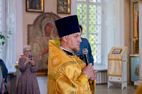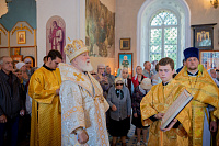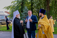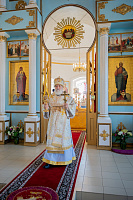 Настоятель иерей Владимир Келин поблагодарил Владыку за совершённое богослужение и преподнёс в дар икону святителя Тихона, патриарха Московского.