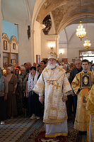 Его Высокопреосвященству сослужили: секретарь Коломенского епархиального управления иерей Андрей Згонников, благочинный 2-го Луховицкого округа, настоятель храма иерей Владимир Келин, благочинный 1-го Луховицкого округа иерей Александр Скабелин и клирики благочиния.