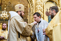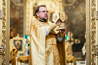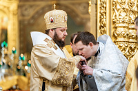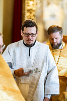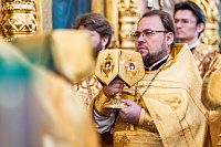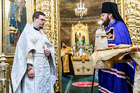По Херувимской песни была совершена иерейская хиротония диакона Александра Бондарева.