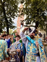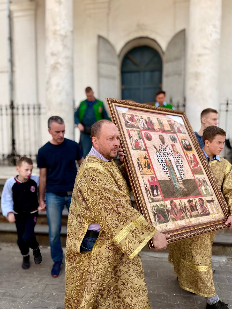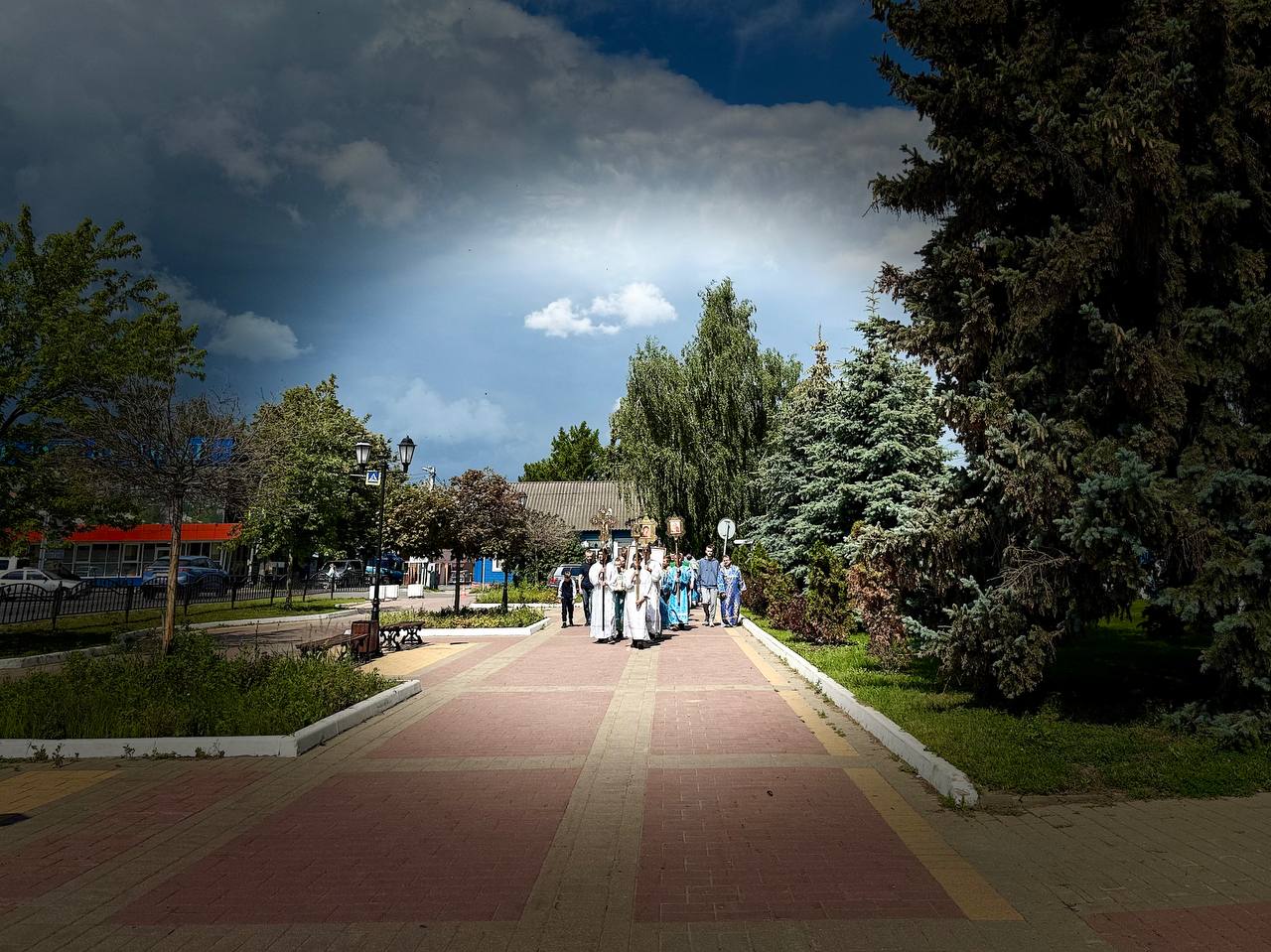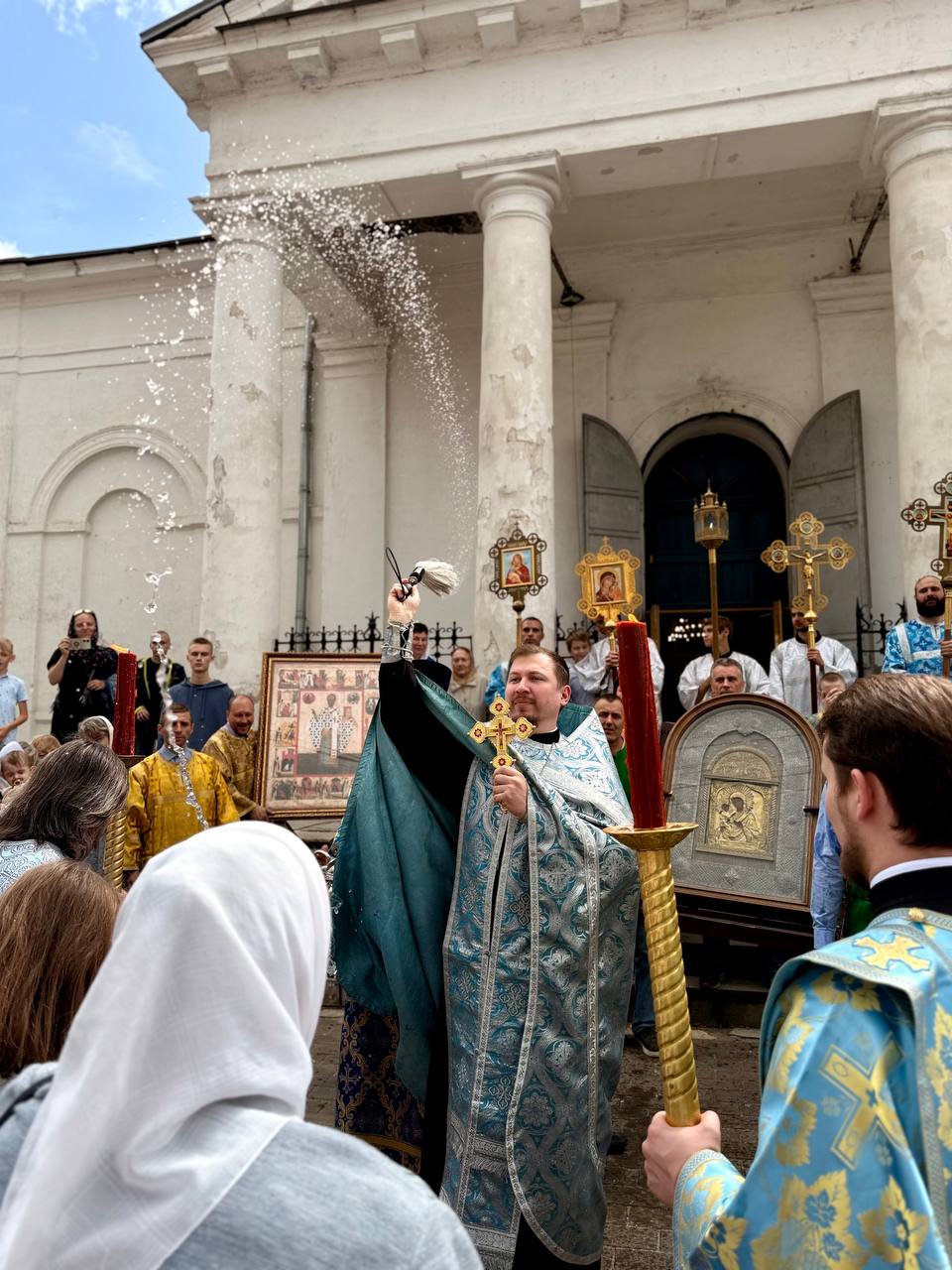 После Божественной Литургии состоялся большой крестный ход вокруг соборного комплекса, в котором приняли участие хоругвеносцы из храмов 1-го Бронницкого благочиния. Крестный ход завершился славлением пред Иерусалимской иконой.