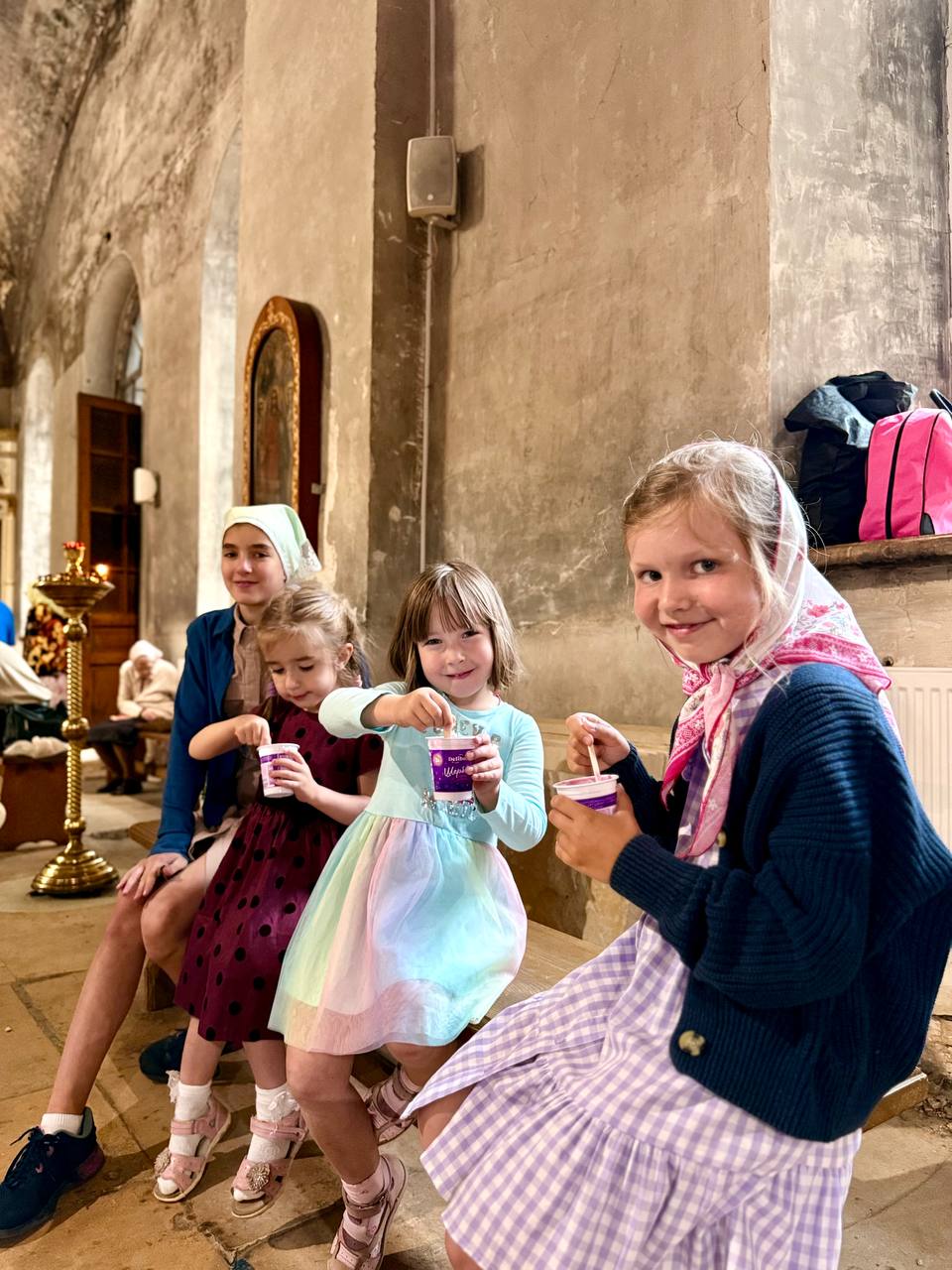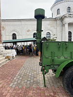 На соборной площади для прихожан и гостей престольного праздника было организовано угощение - полевая кухня, предоставленная руководителем ООО "ЗВО "Инновент" Сергеем Анатольевичем Дуениным, и мороженое для детей.