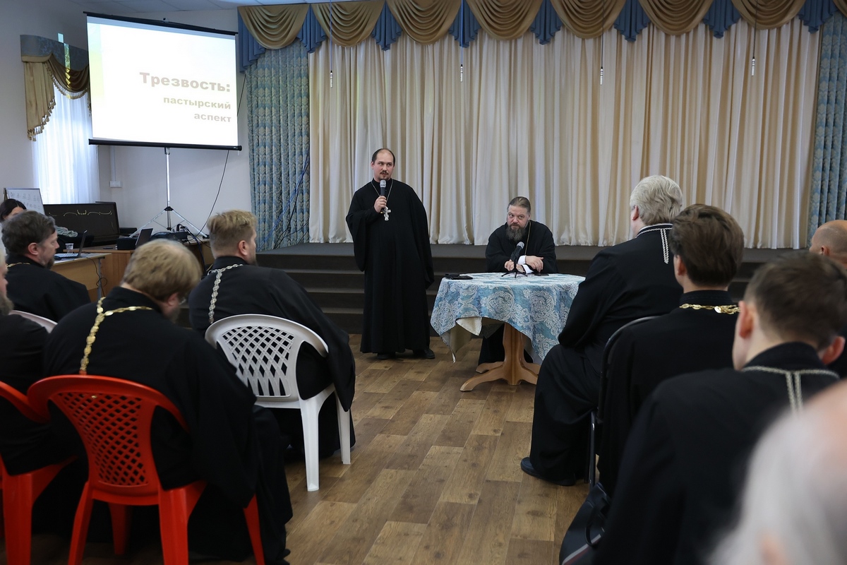 В продолжение заседания состоялся пастырский семинар, в рамках которого председатель Епархиального отдела по утверждению трезвости протоиерей Илия Шугаев прочитал лекцию на тему «Трезвость: пастырский аспект». Протоиерей Илия рассказал об особенностях общения с зависимыми, конкретных шагах в организации трезвенной деятельности и пастырской помощи зависимым и созависимым. Ещё один доклад об оказании помощи зависимым людям и их родственникам сделал ответственный за организацию трезвенной работы на приходах г. Москвы диакон Иоанн Клименко.