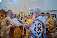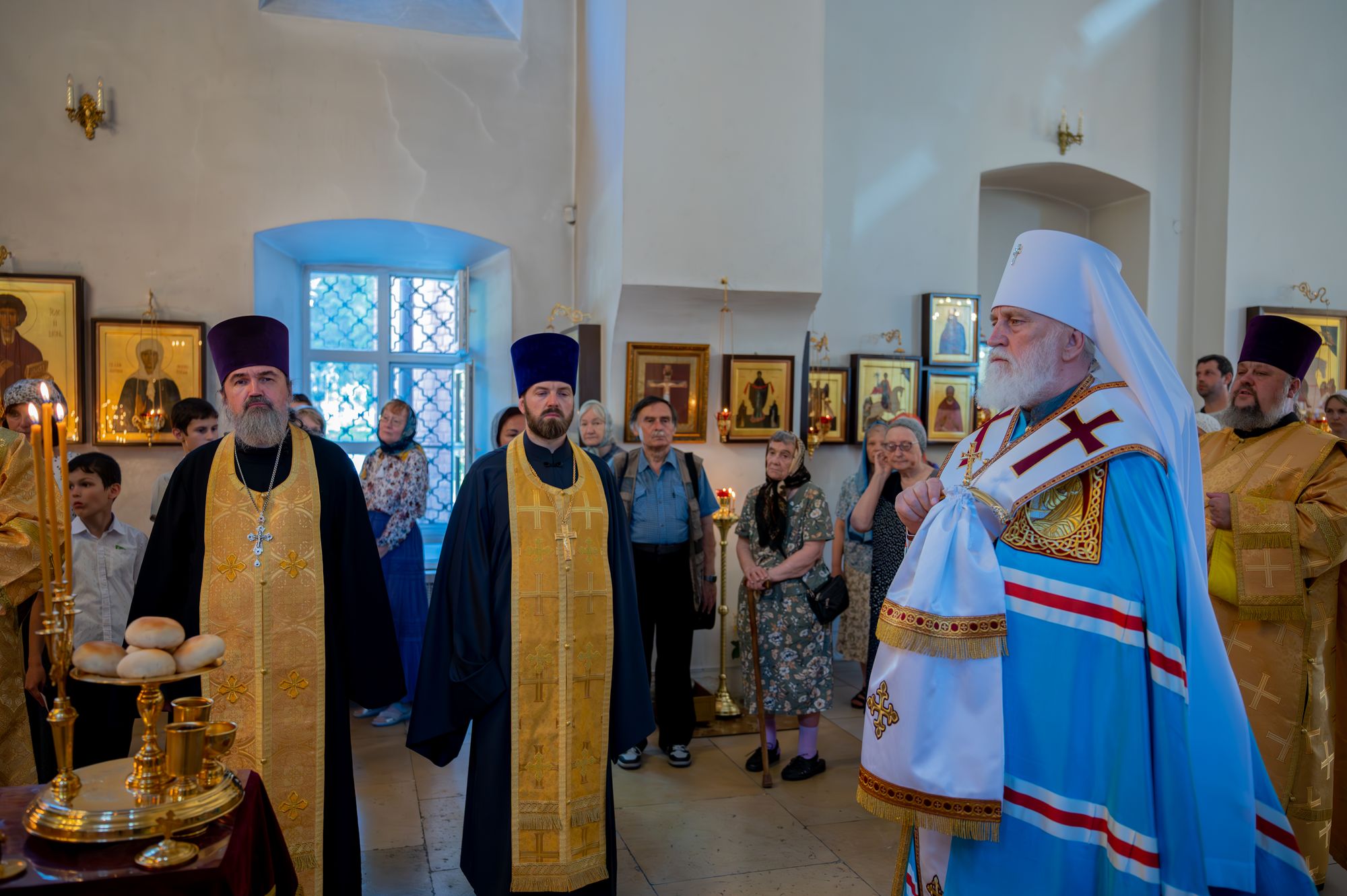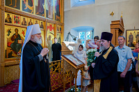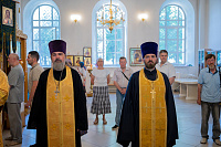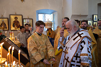 Его Высокопреосвященству сослужили: секретарь Коломенского епархиального управления иерей Андрей Згонников, благочинный 1-го Коломенского округа протоиерей Алексий Виноградов, настоятель храма протоиерей Александр Хмылов и клирики храма.