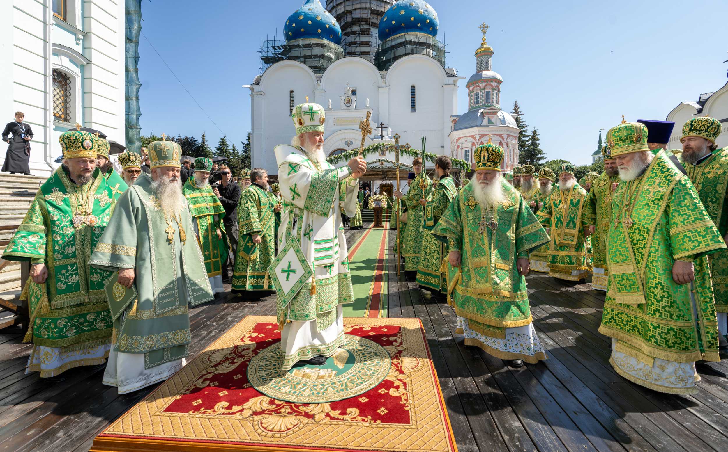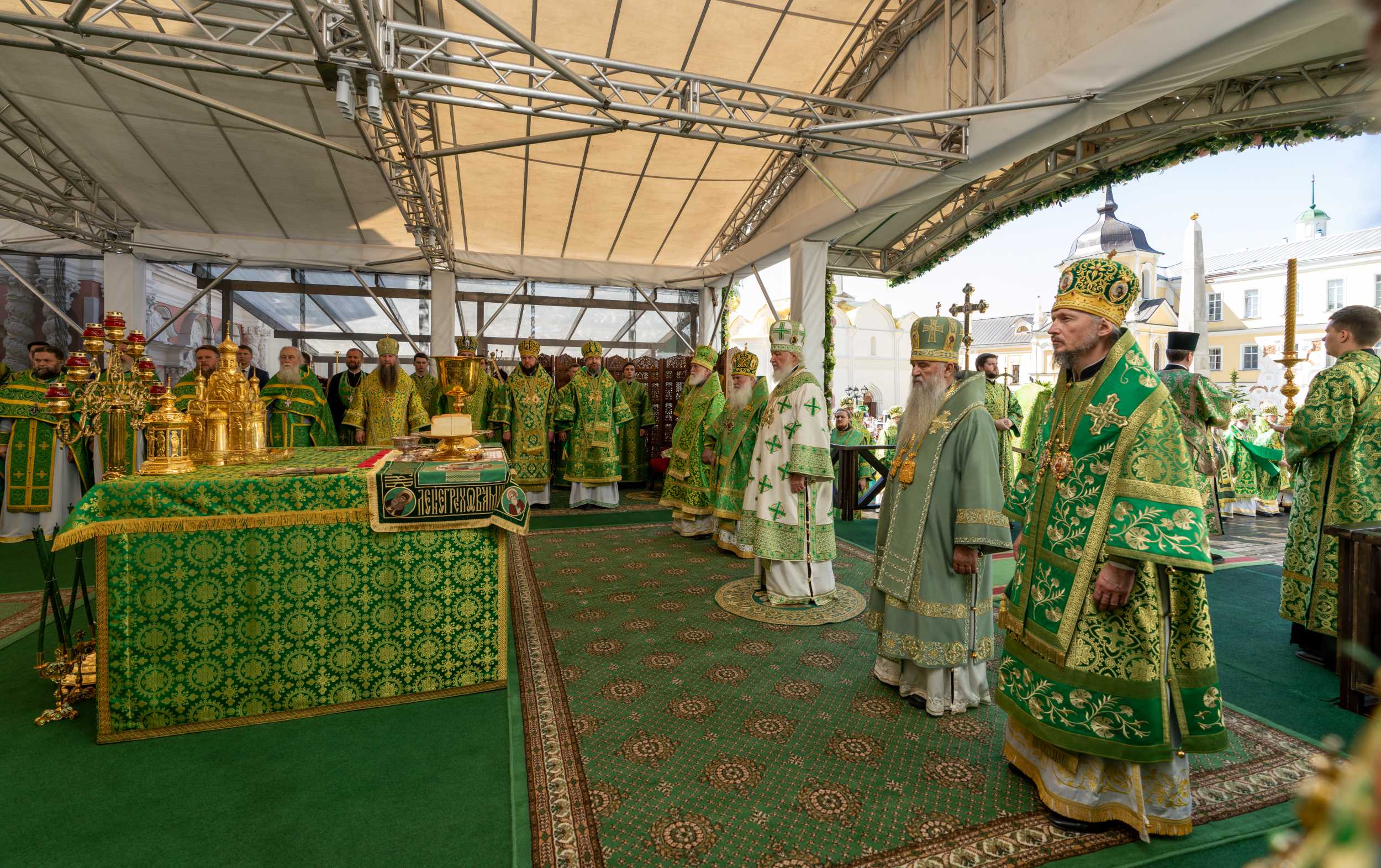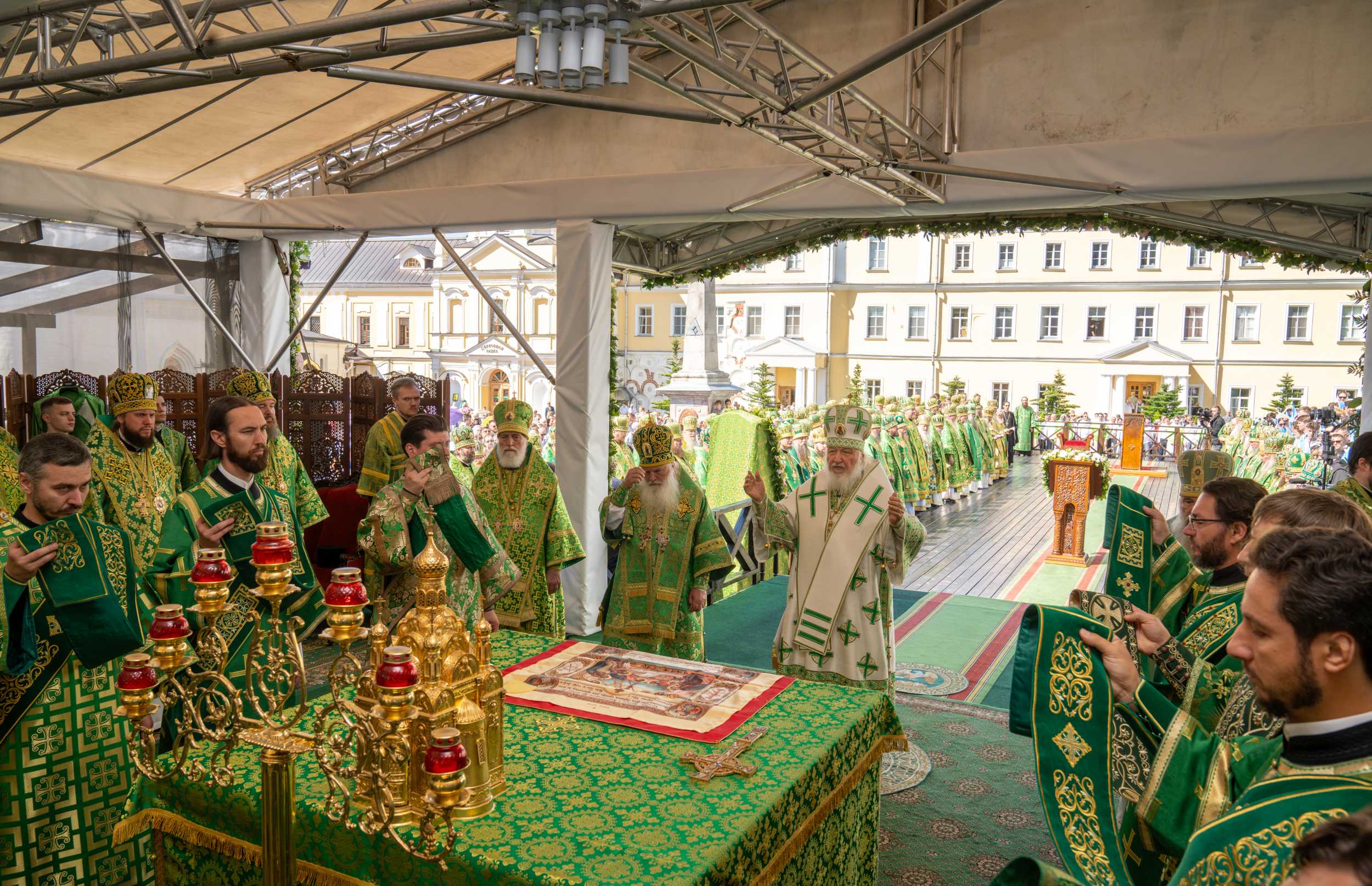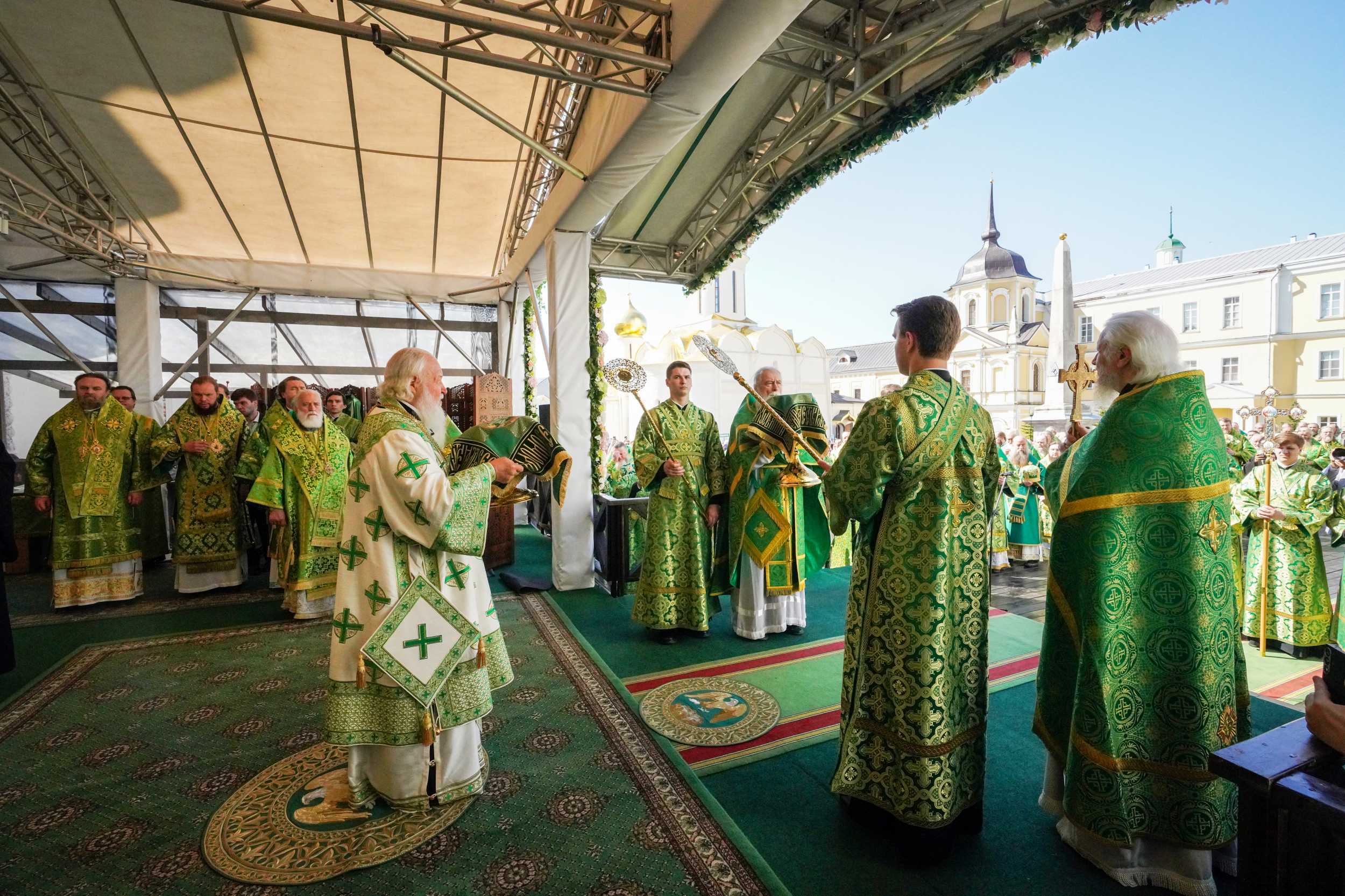 18 июля 2025 года, в день праздника обретения честных мощей преподобного Сергия, игумена Радонежского (1422), Святейший Патриарх Московский и всея Руси Кирилл совершил Божественную литургию на Соборной площади Свято-Троицкой Сергиевой лавры.