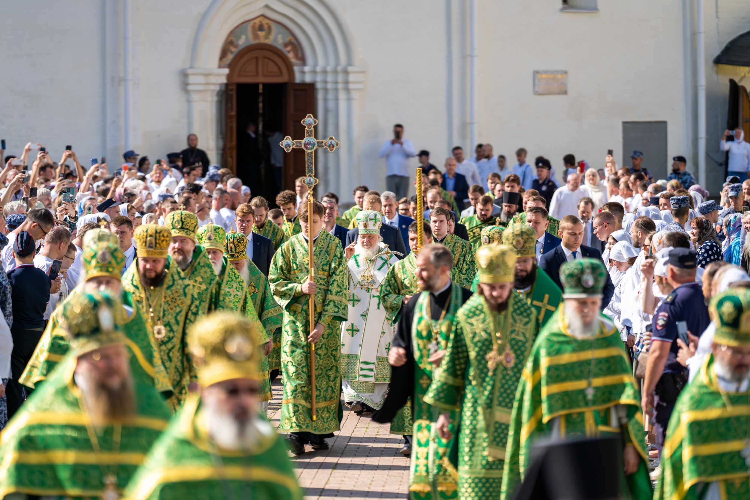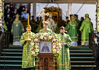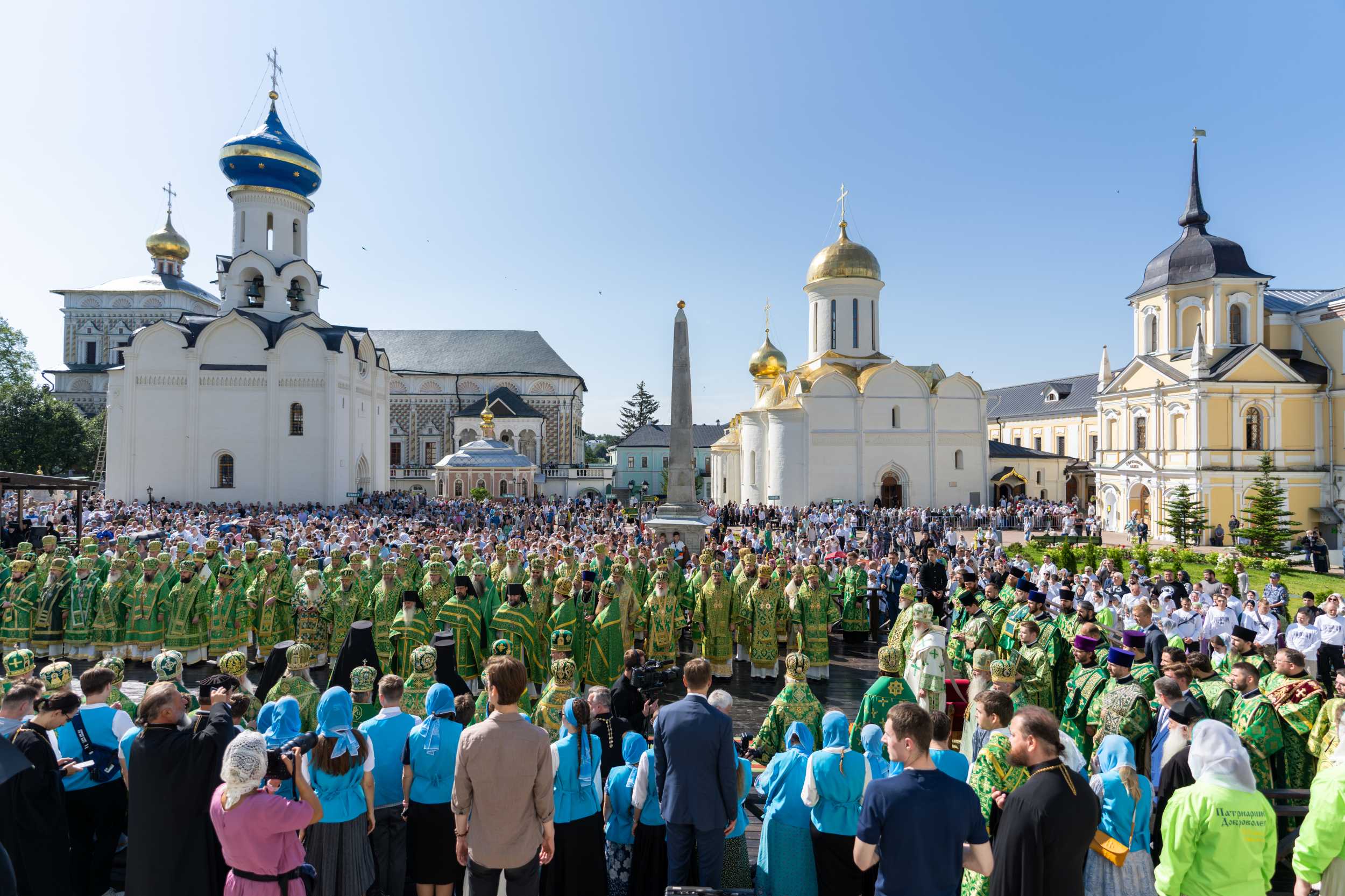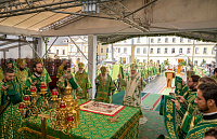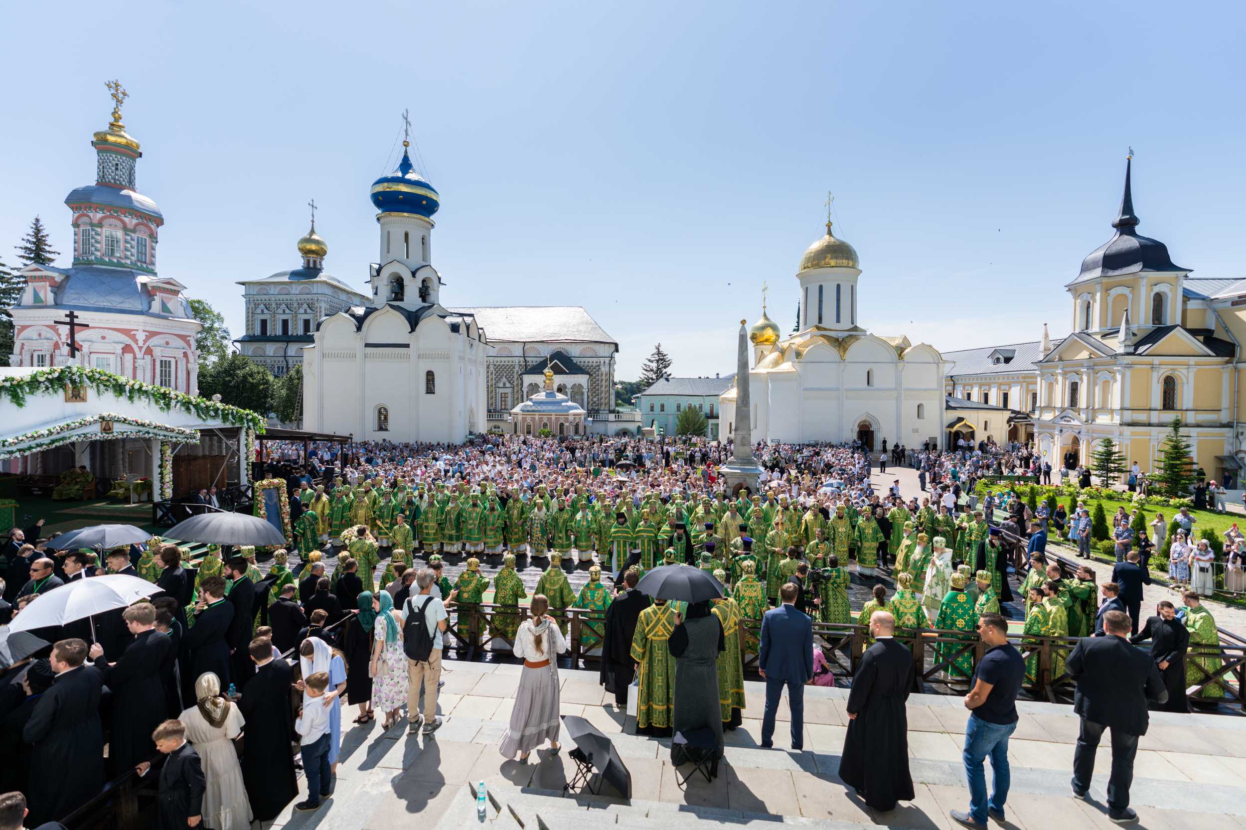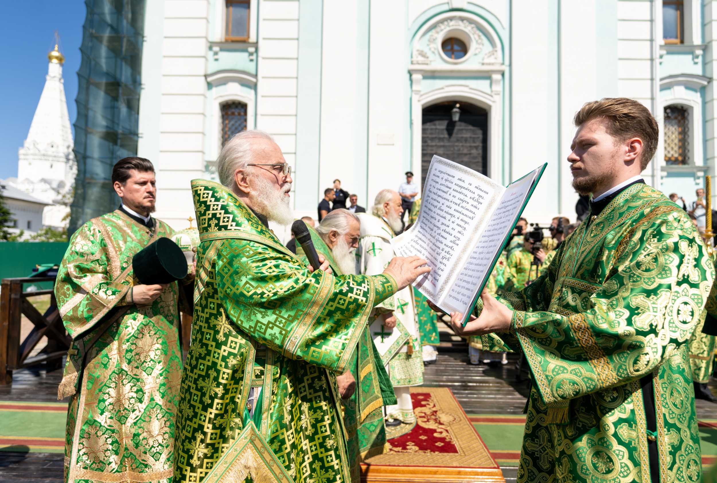 18 июля 2025 года, в день праздника обретения честных мощей преподобного Сергия, игумена Радонежского (1422), Святейший Патриарх Московский и всея Руси Кирилл совершил Божественную литургию на Соборной площади Свято-Троицкой Сергиевой лавры.