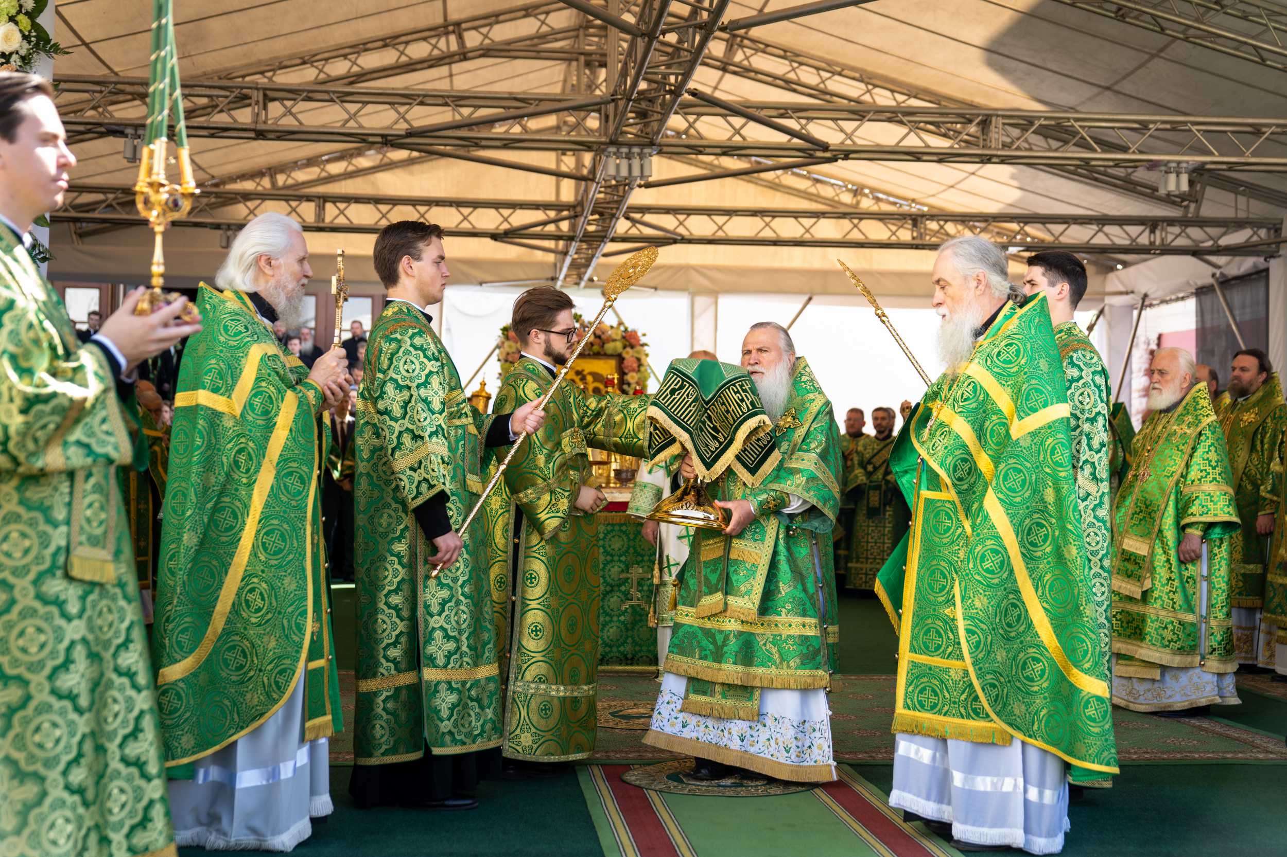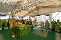 Торжественное богослужение совершалось перед чтимой иконой преподобного Сергия Радонежского. Для совершения праздничных всенощного бдения и Божественной литургии на Соборной площади был устроен помост, а перед Успенским собором лавры — престол под сенью.