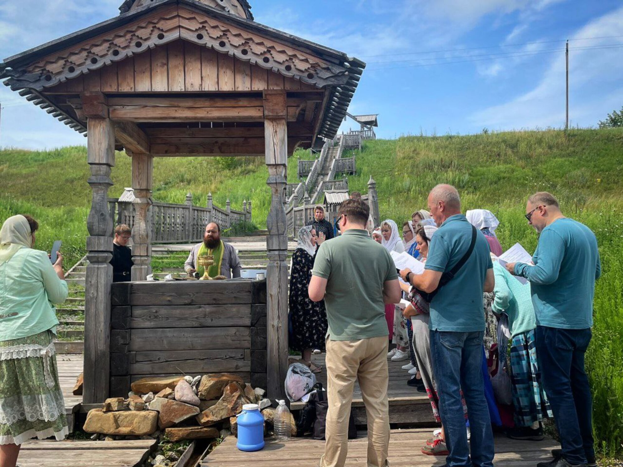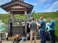 Также в этот день гости прихода посетили соседнее село Протекино, где помолились у памятника благоверным Петру и Февронии, и в храме святителя Василия Рязанского приложились к святыням и пропели молитвословия. Затем на источнике праведной Анны пророчицы был совершён водосвятный молебен, а желающие окунулись в купель.