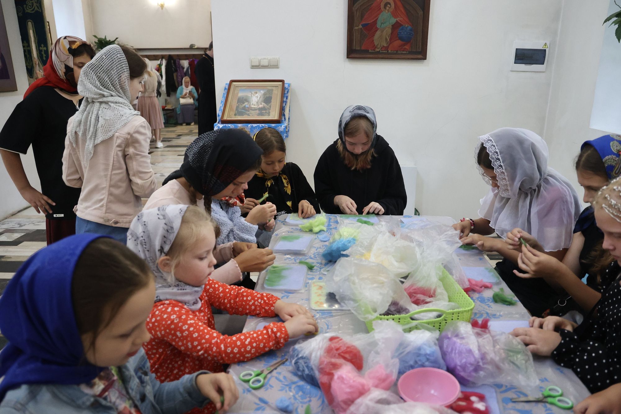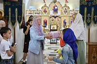 Во время праздника действовала благотворительная ярмарка, подготовленная воспитанниками воскресной школы под руководством педагога М.В. Чабан.