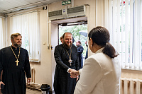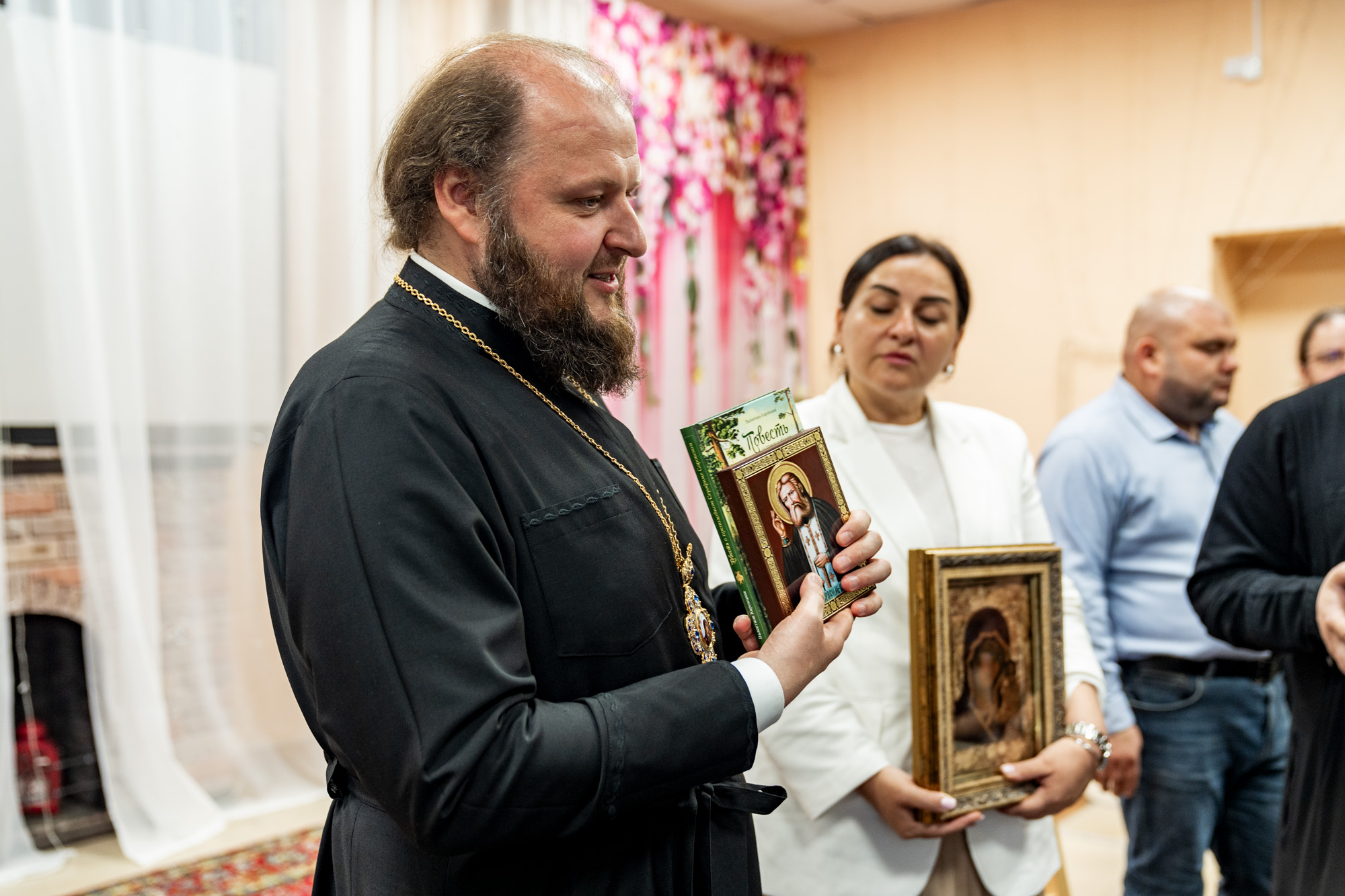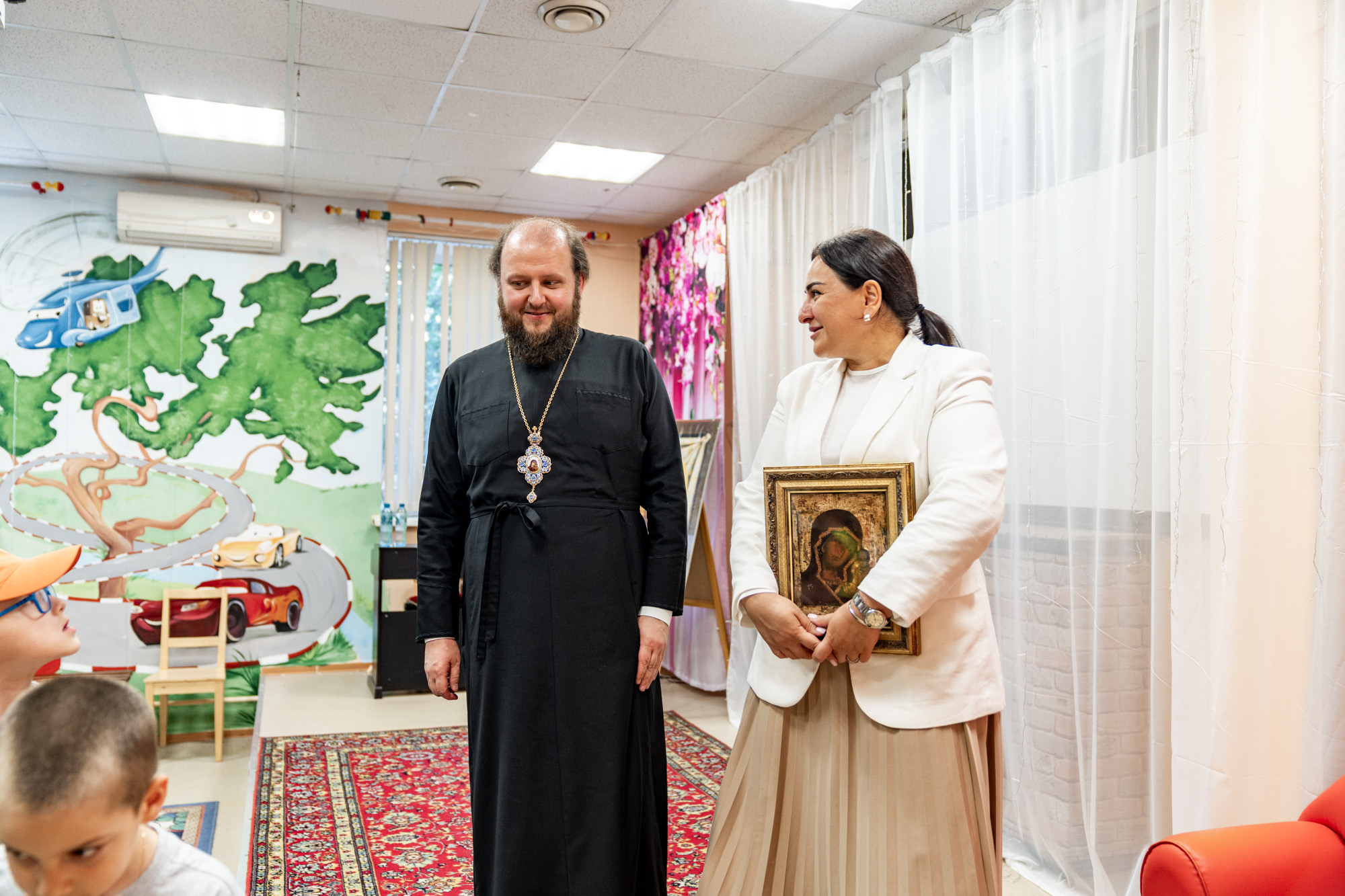 Затем гости побывали в реабилитационном центре для детей с инвалидностью в городе Котельники и пообщались с директором Т.М.Кортхонджией и подопечными центра. Владыка вознёс молитву о скорейшем выздоровлении детей и преподнёс им памятные подарки.