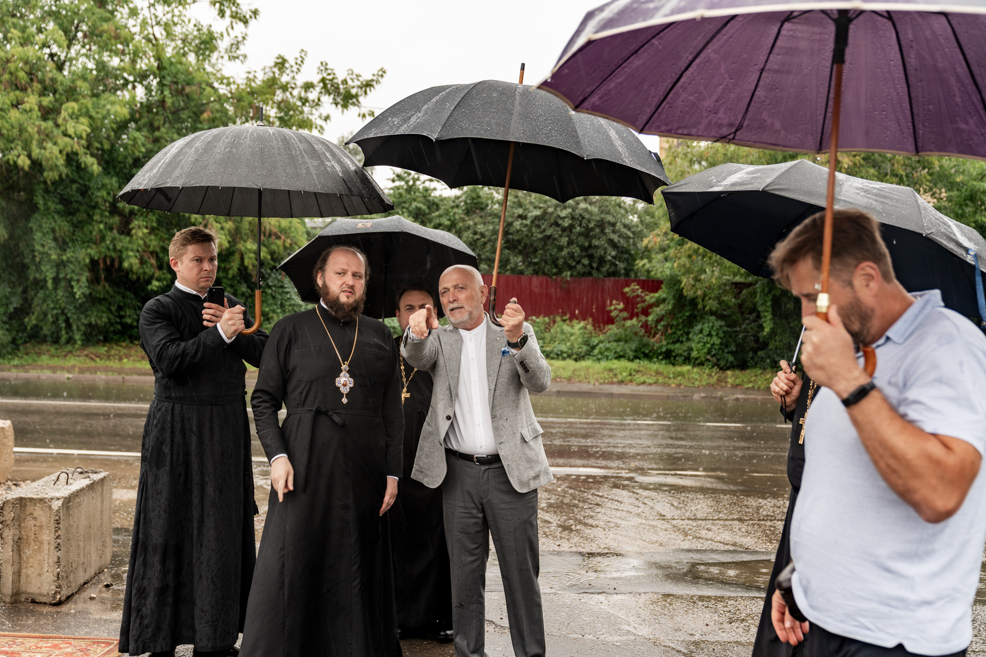Далее владыка посетил место строительства храма в честь Христа Спасителя в городе Котельники, где совершил молитву о начале доброго дела и обсудил с благотворителями сроки начала строительства.