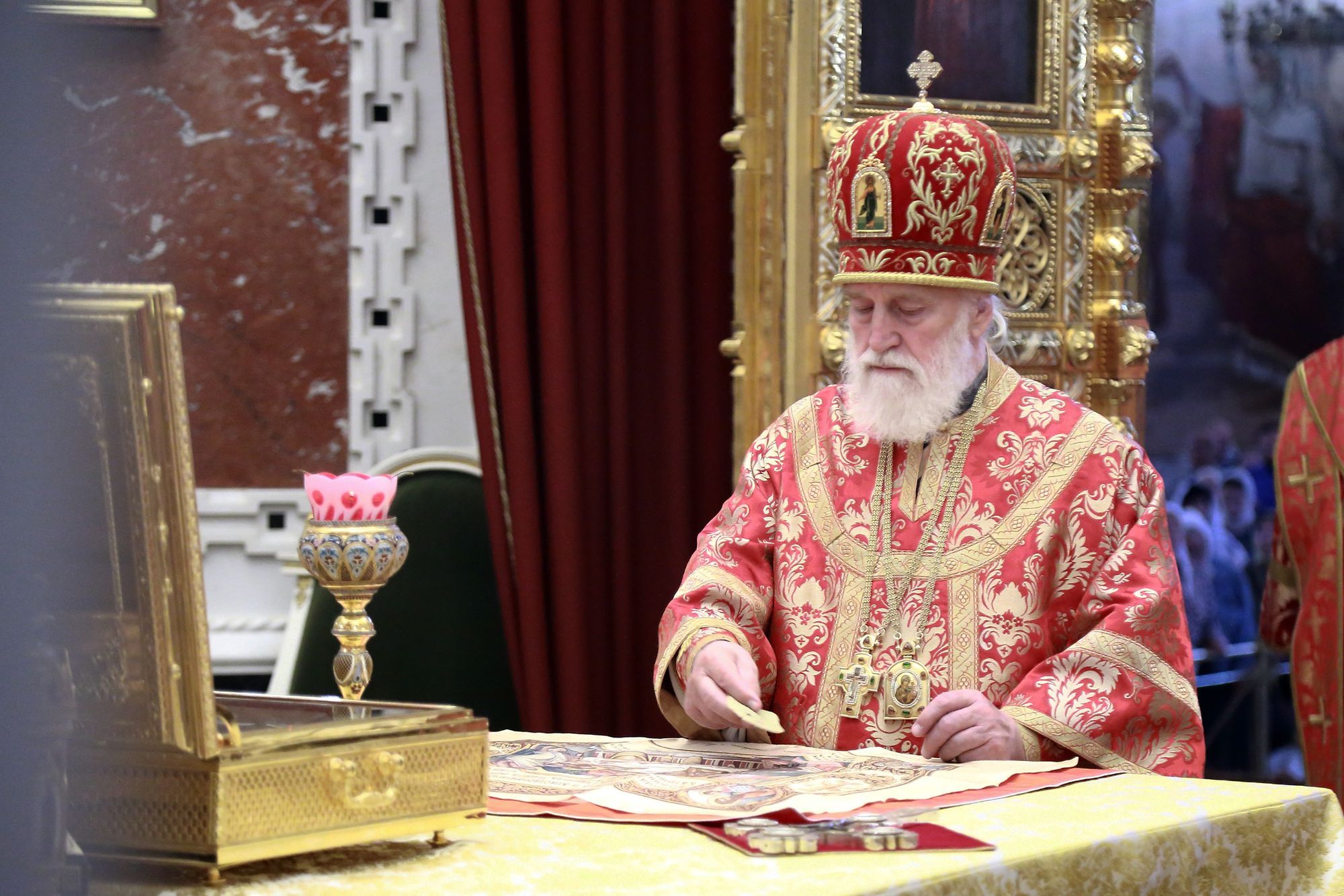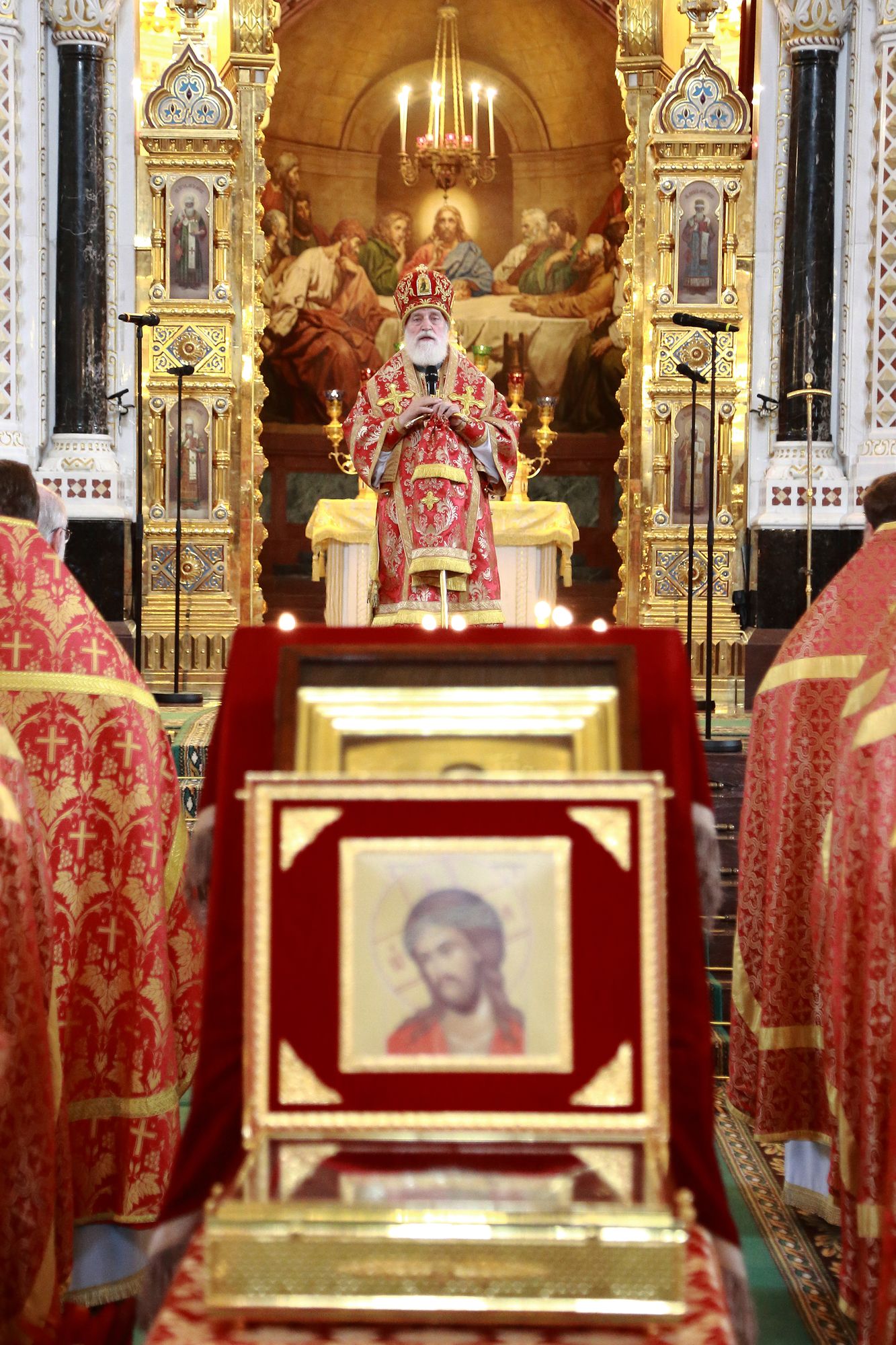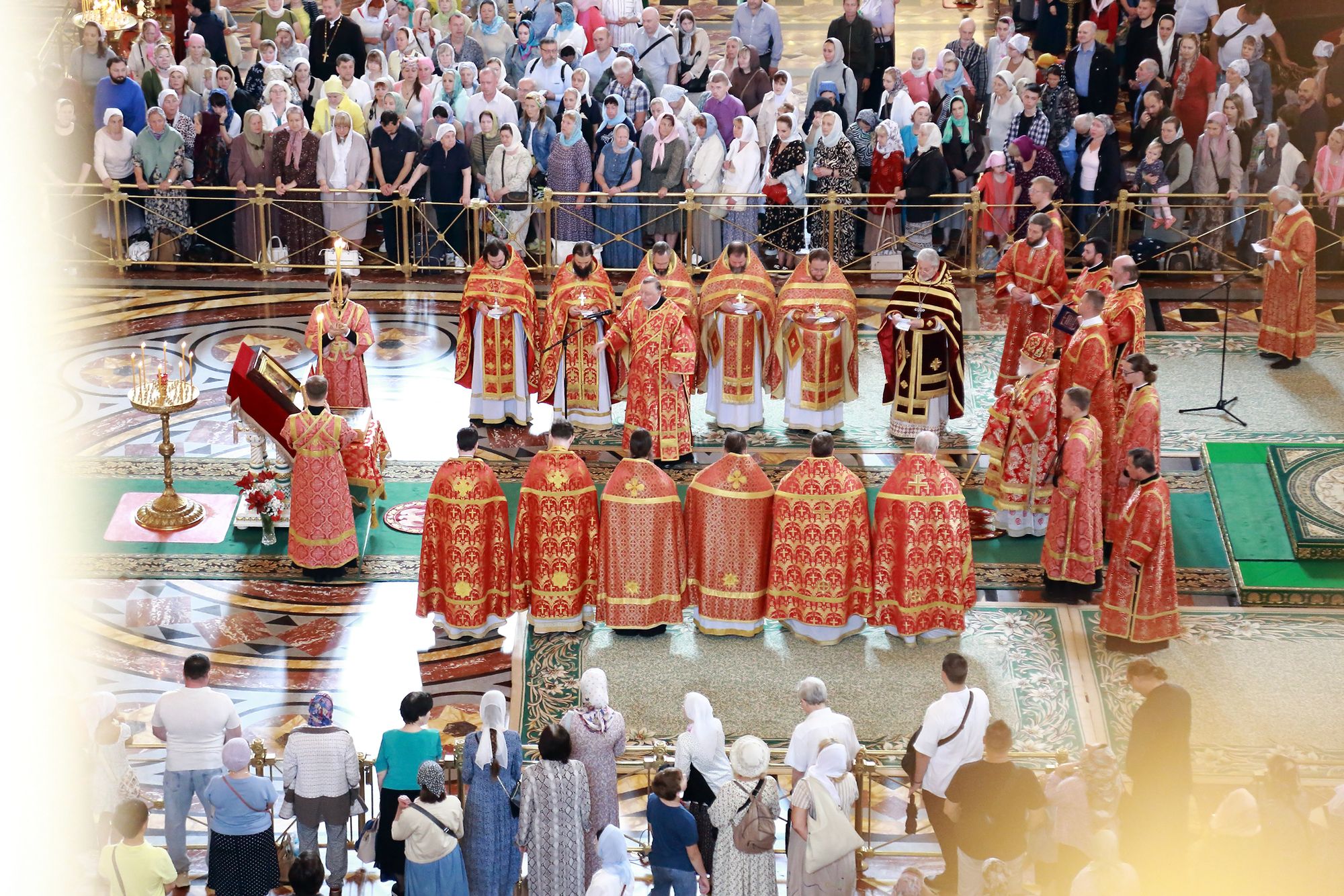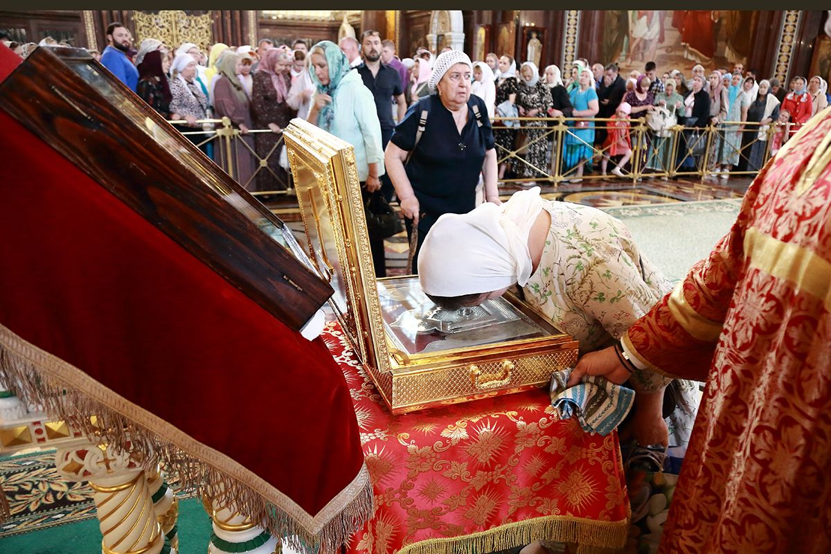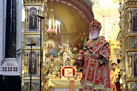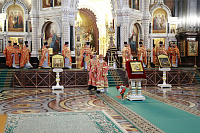 По окончании Литургии из алтаря был изнесён и положен на аналое в центре храма ковчег с частицей Ризы Господней.