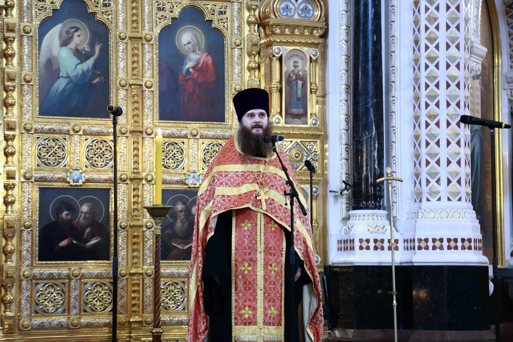 Проповедь перед причастием произнёс иерей Василий Орехов, клирик Храма святителя Николая Мирликийского на Трёх Горах города Москвы.