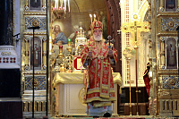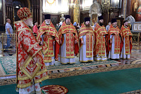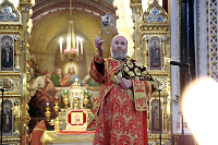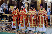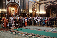 Его Высокопреосвященству сослужили: протоиерей Михаил Рязанцев, ключарь Храма Христа Спасителя и ряд клириков города Москвы.